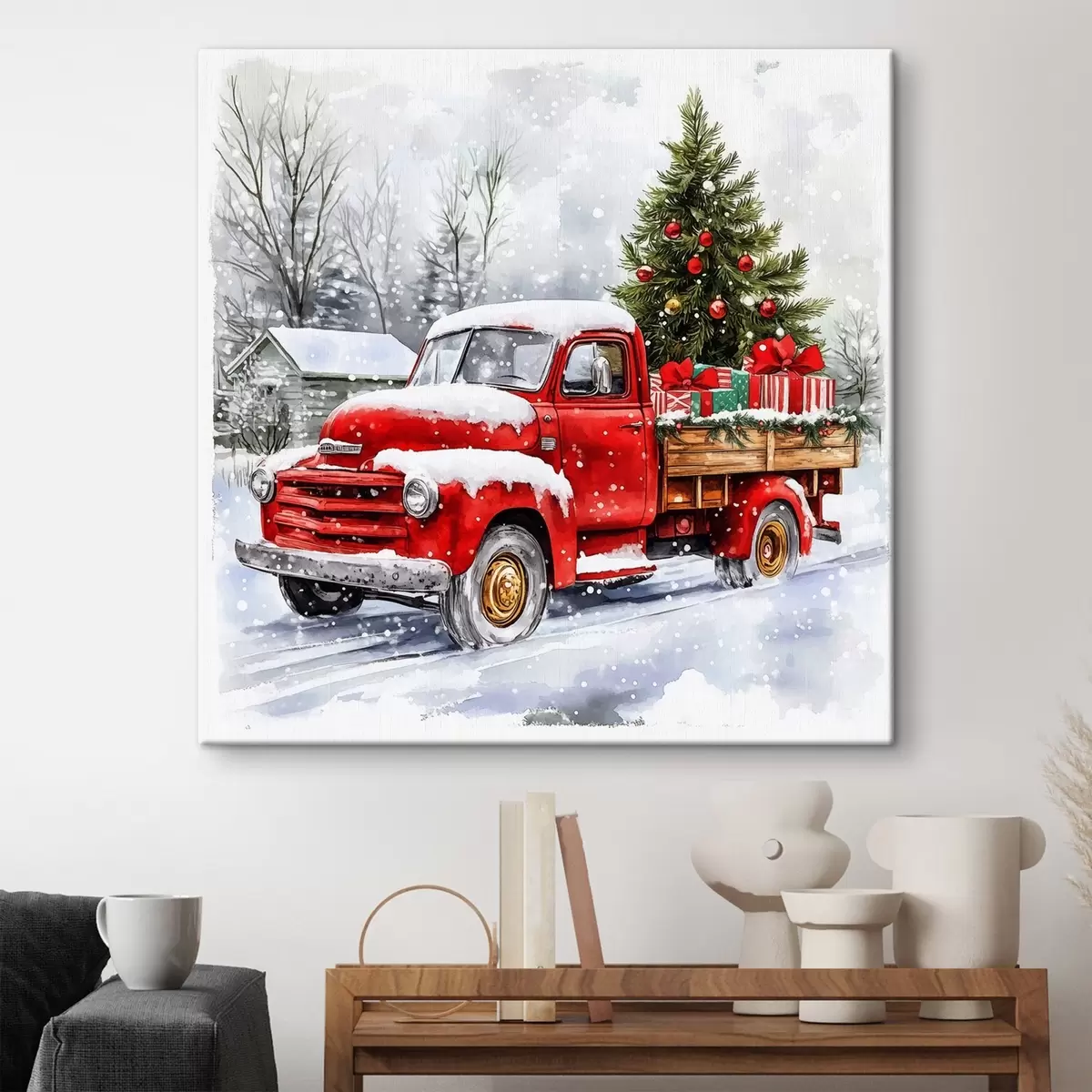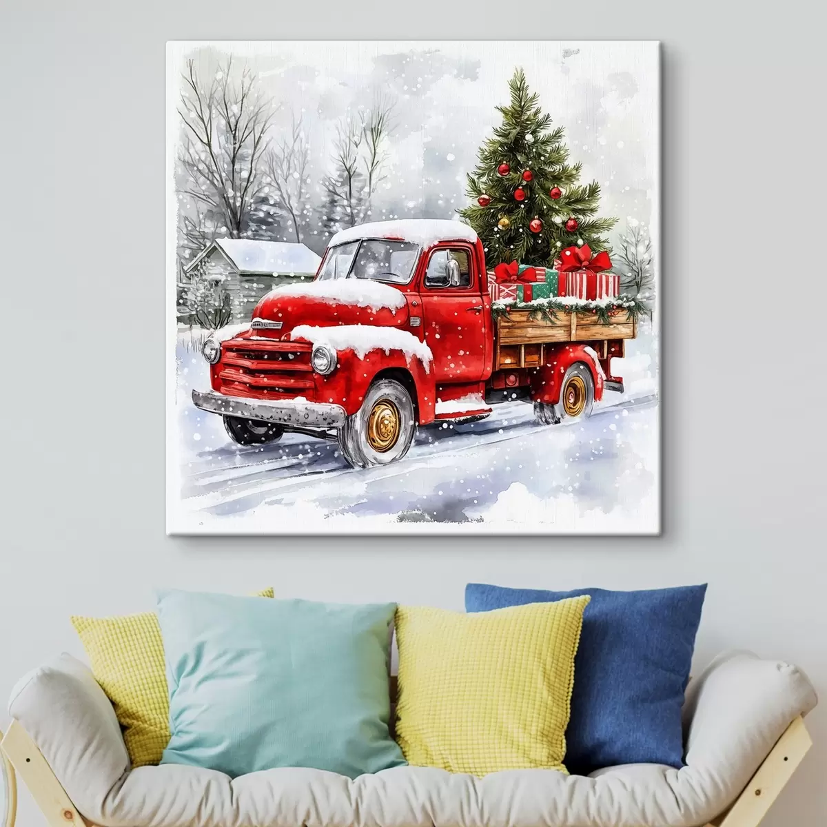 Картина Різдвяний автомобіль з ялинкою та подарунками в сніжну погоду Арт. s41968