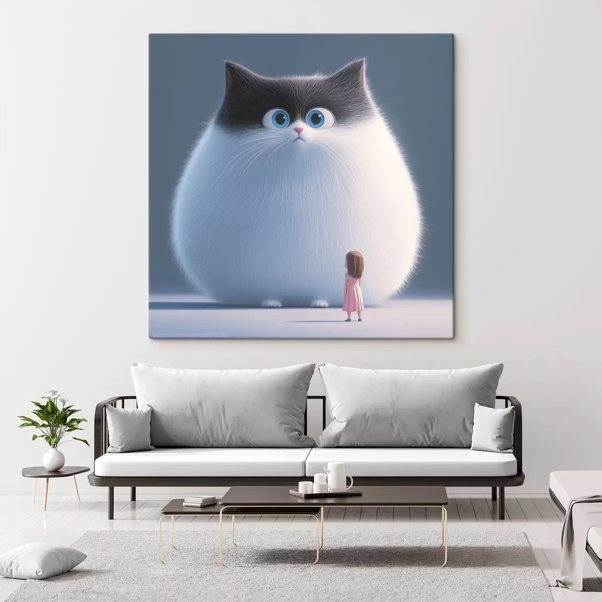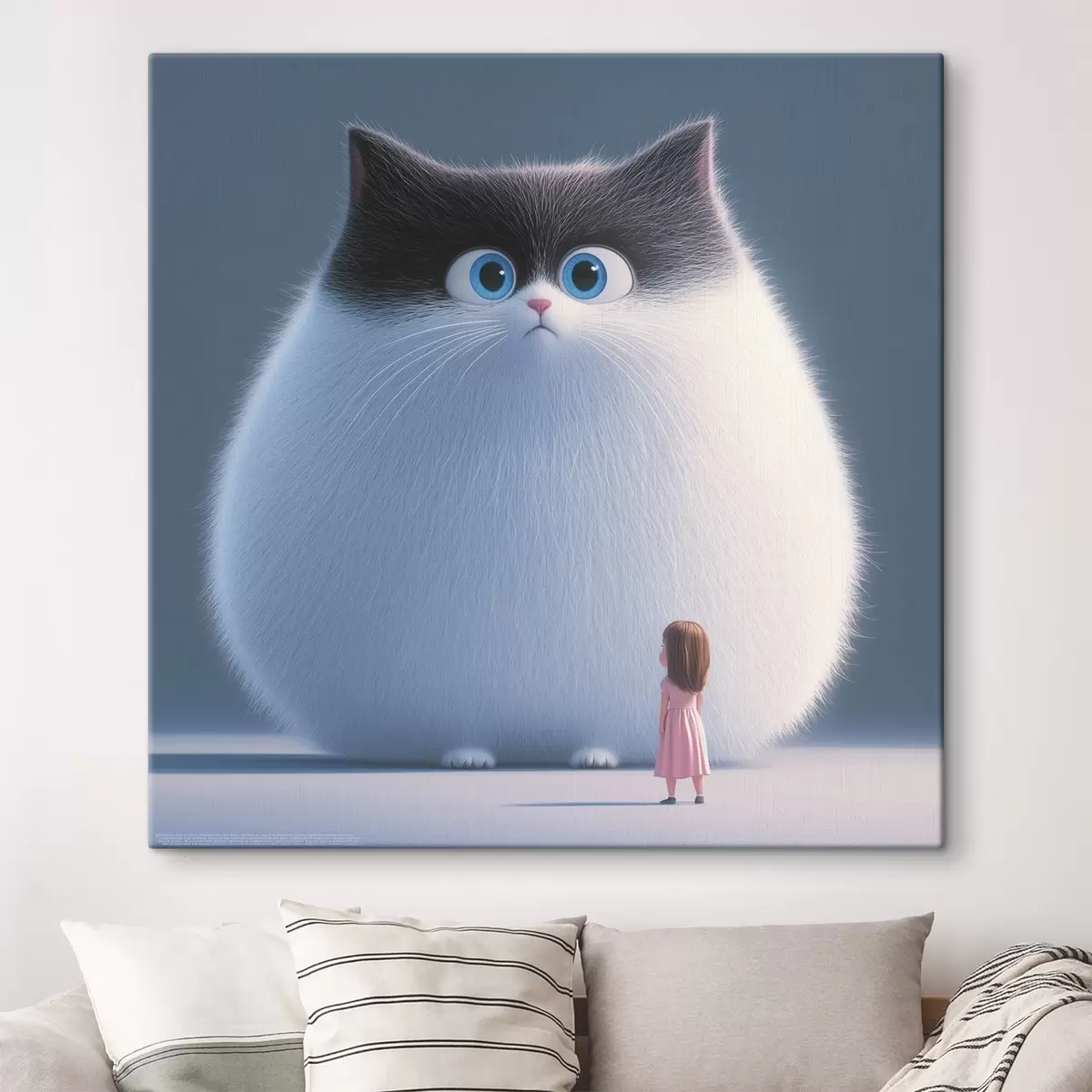Картина Здивований пухнастий кіт з дівчиною в стилі ілюстрації s41974