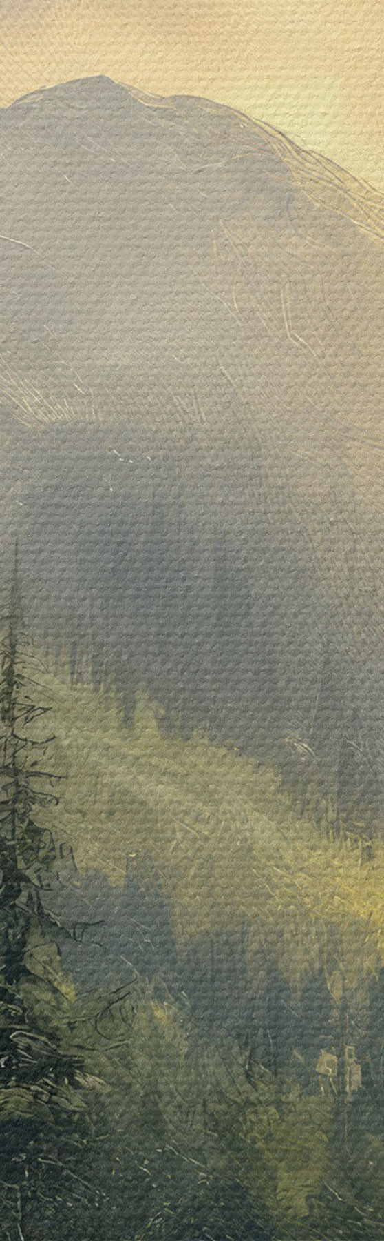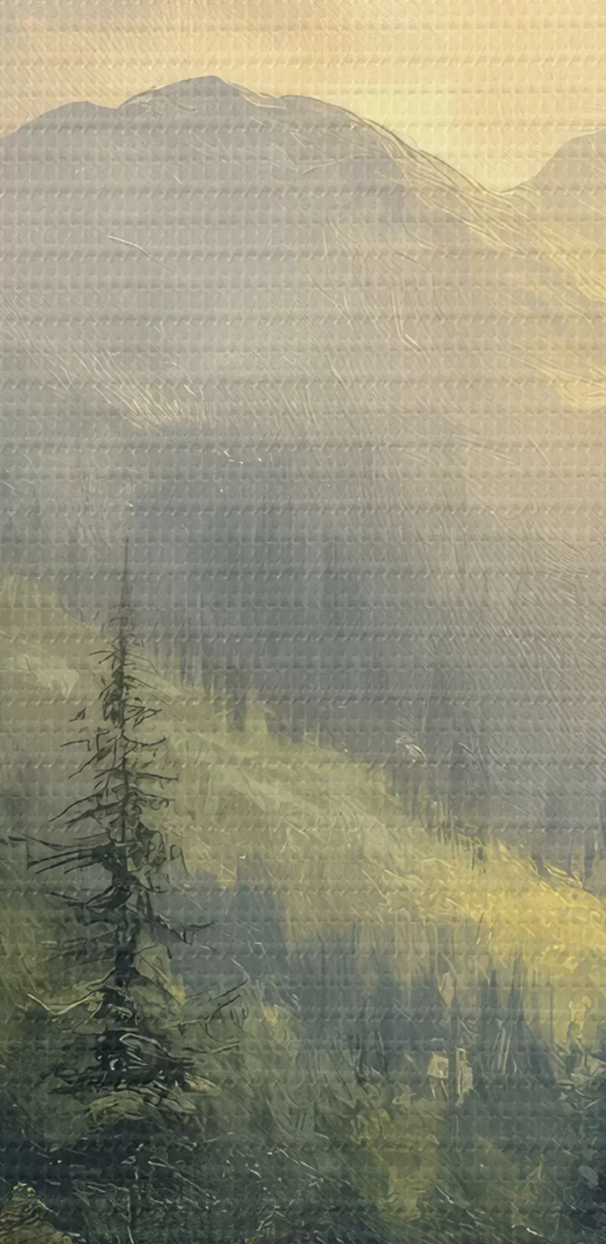 Картина гори в тумані та дерева s42019
