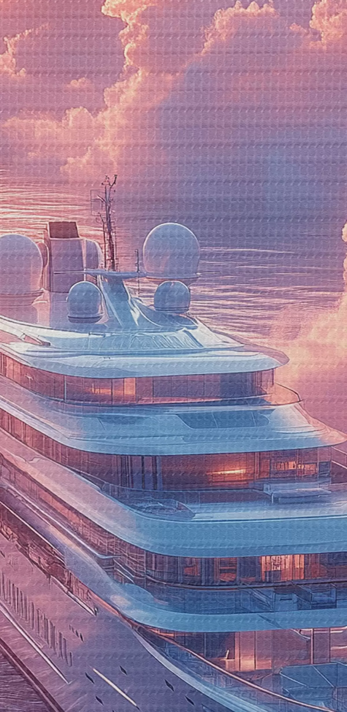 Картина Круїзний корабель на тлі рожевого заходу сонця s42085