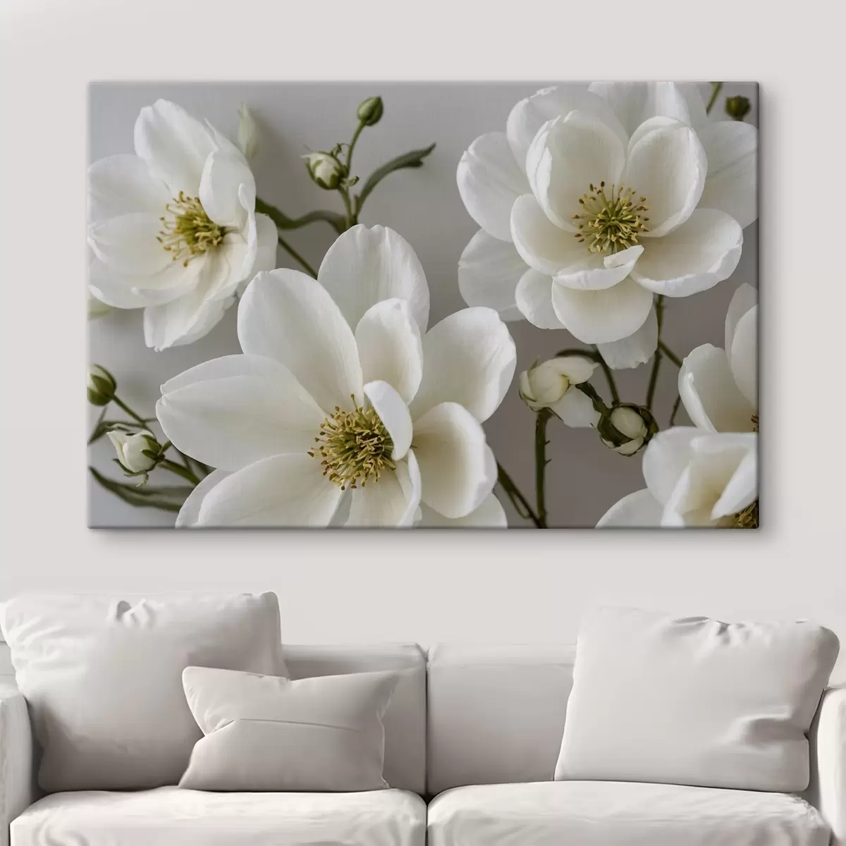 Картина Білі квіти та стебла на світлому фоні Арт. s42097
