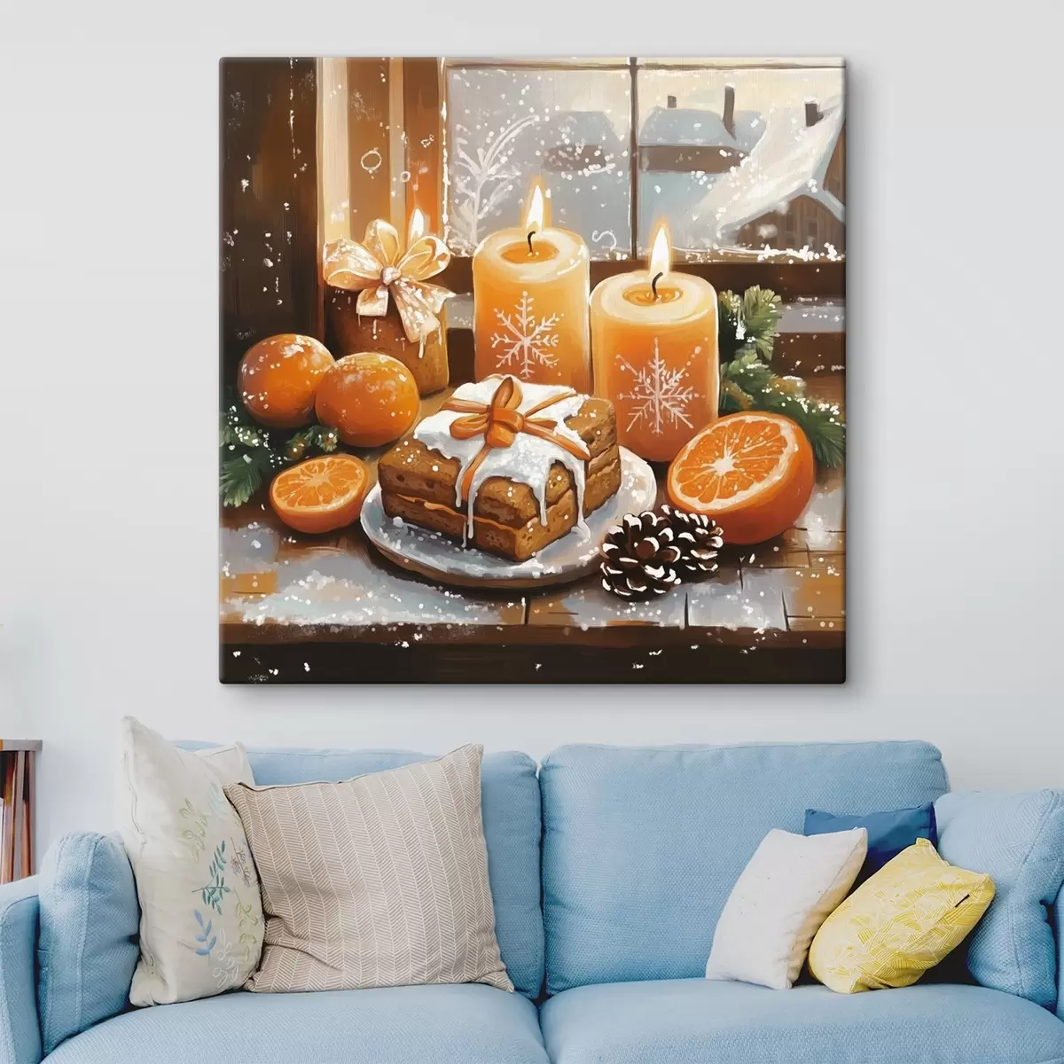 Картина Різдвяний торт, мандарини, свічки Арт. s42101