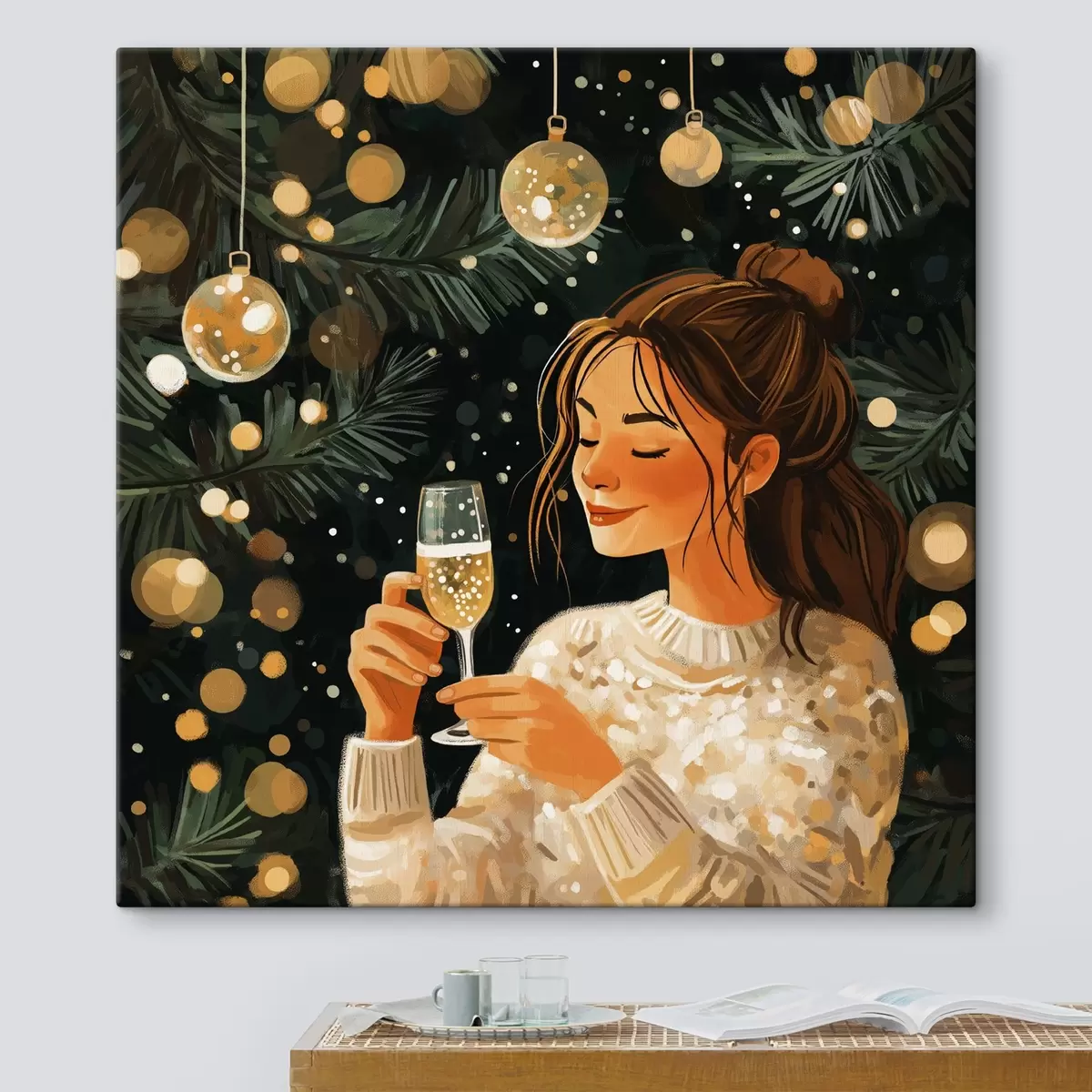 Картина Дівчина з келихом шампанського в новорічну ніч Арт. s42102