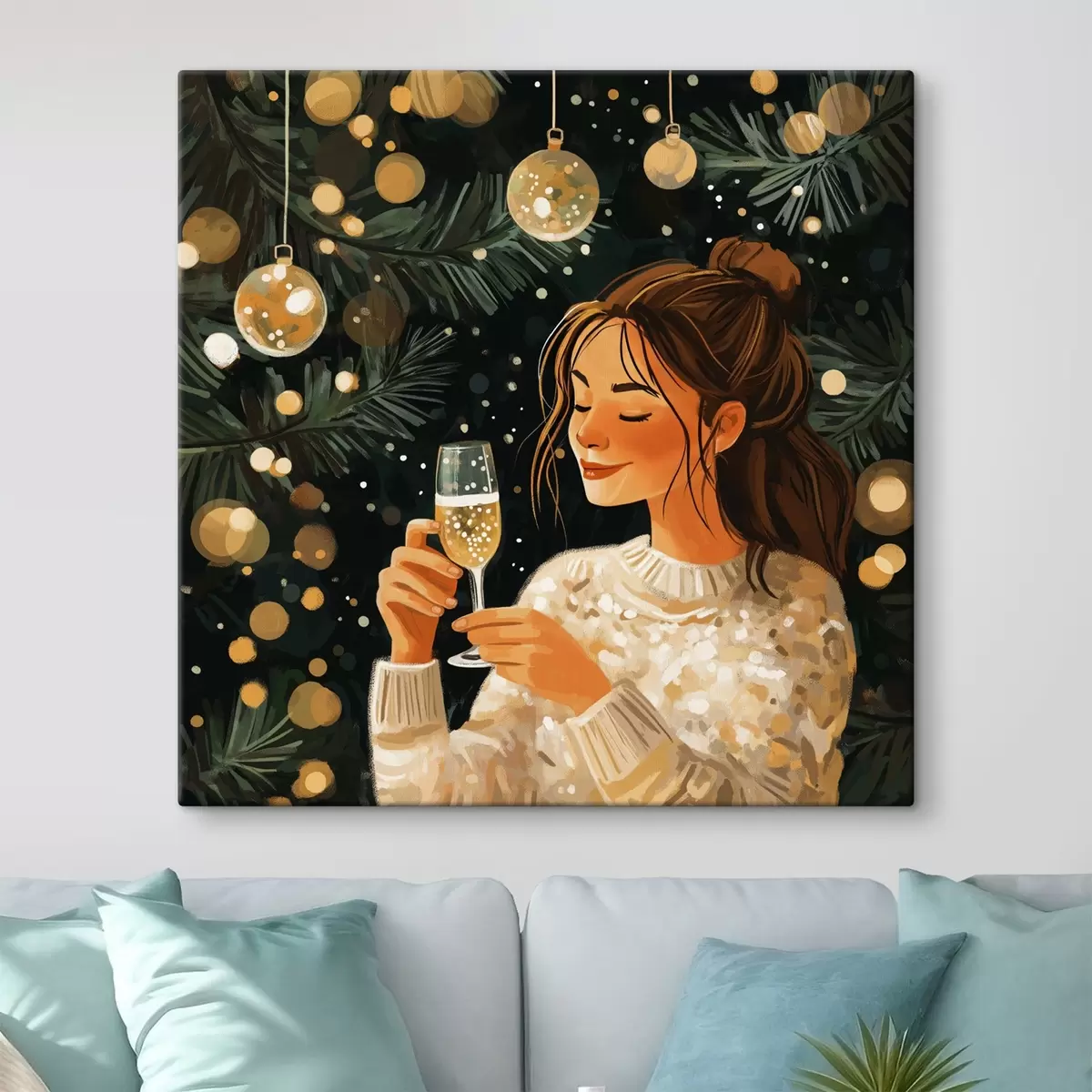 Картина Дівчина з келихом шампанського в новорічну ніч Арт. s42102