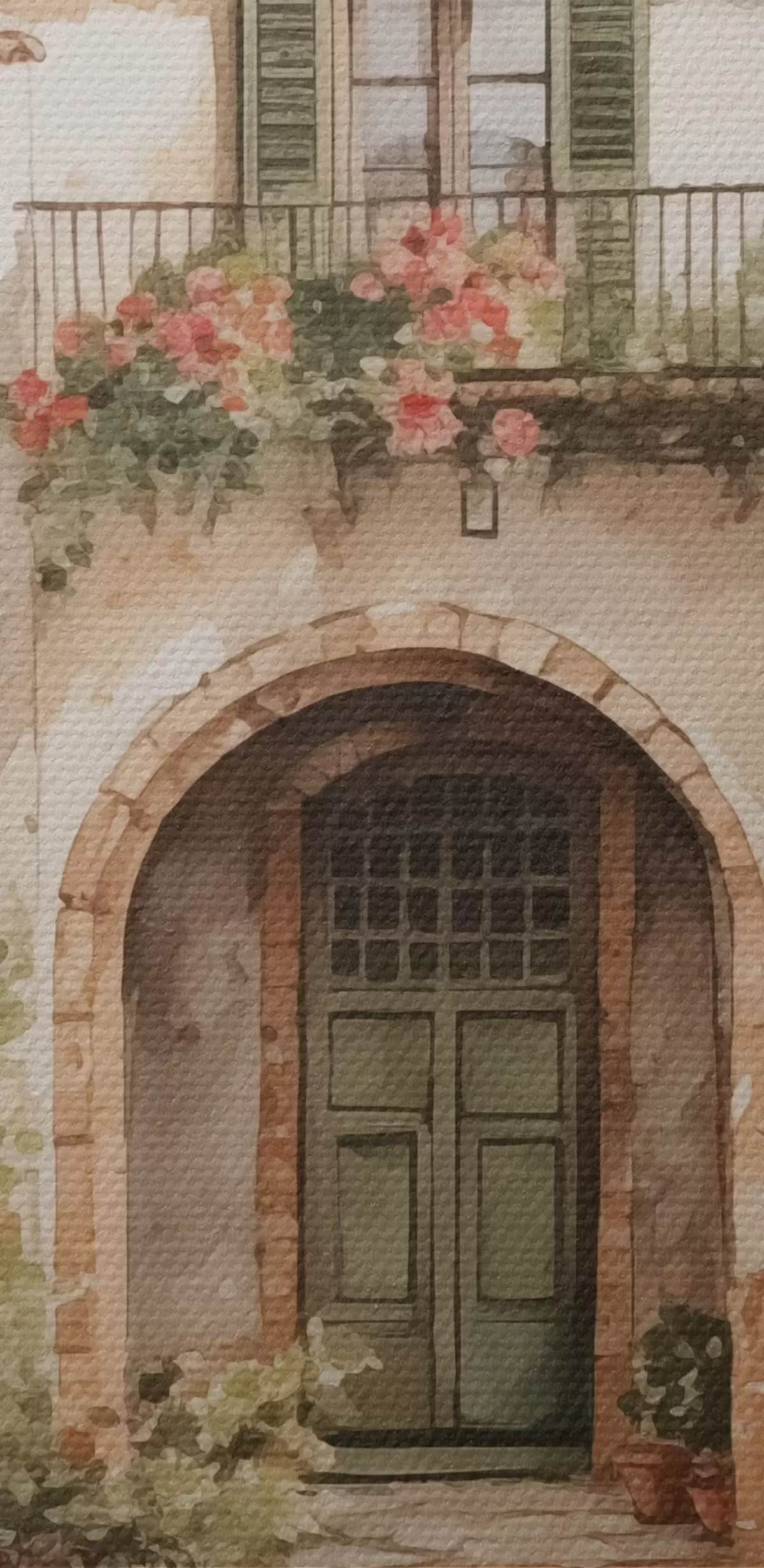 Картина Італійський дворик з вазонами, що імітують акварель s42126