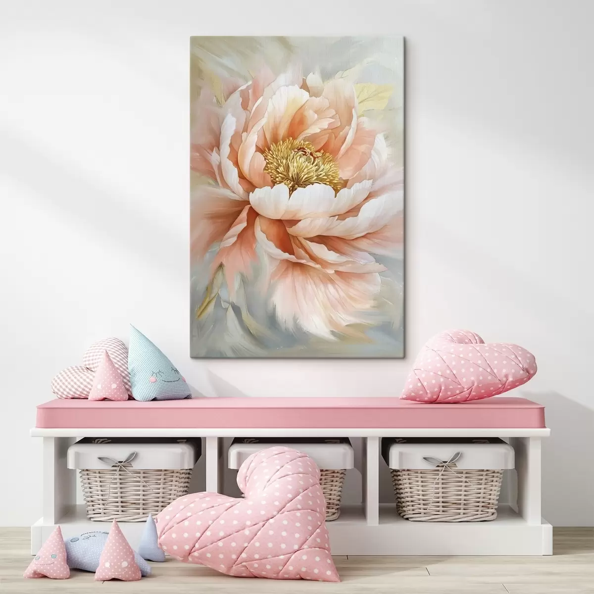 Картина Квітка півонії в акриловому стилі, рожеві кольори, мазки пензлем Арт. s42199