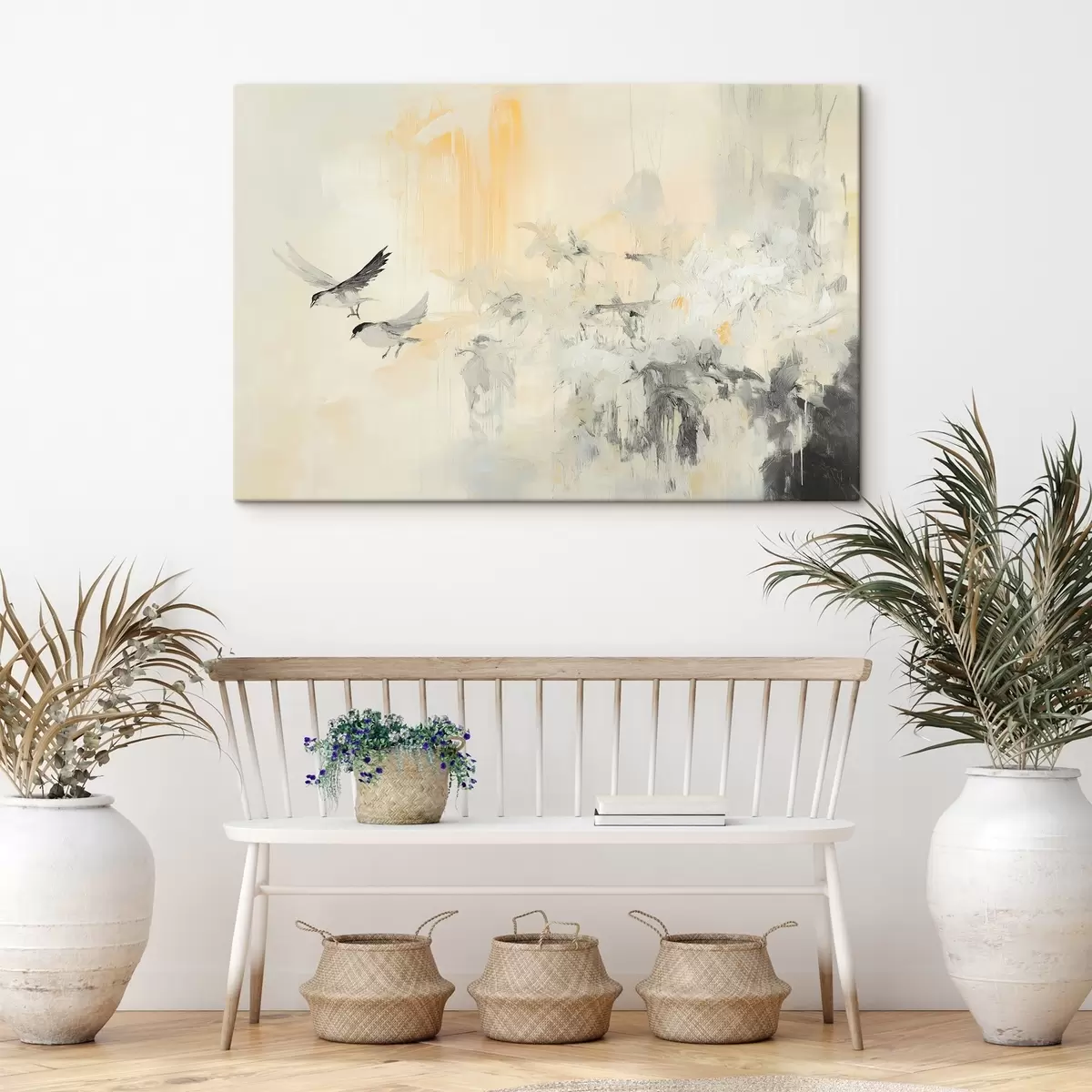 Картина Абстракція з птахами, акриловий стиль, сірий та бежевий кольори Арт. s42206