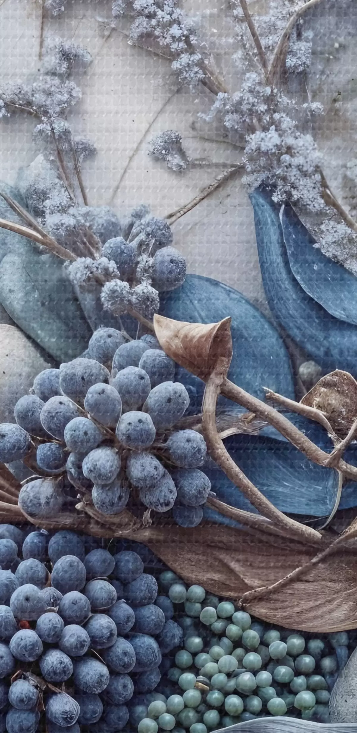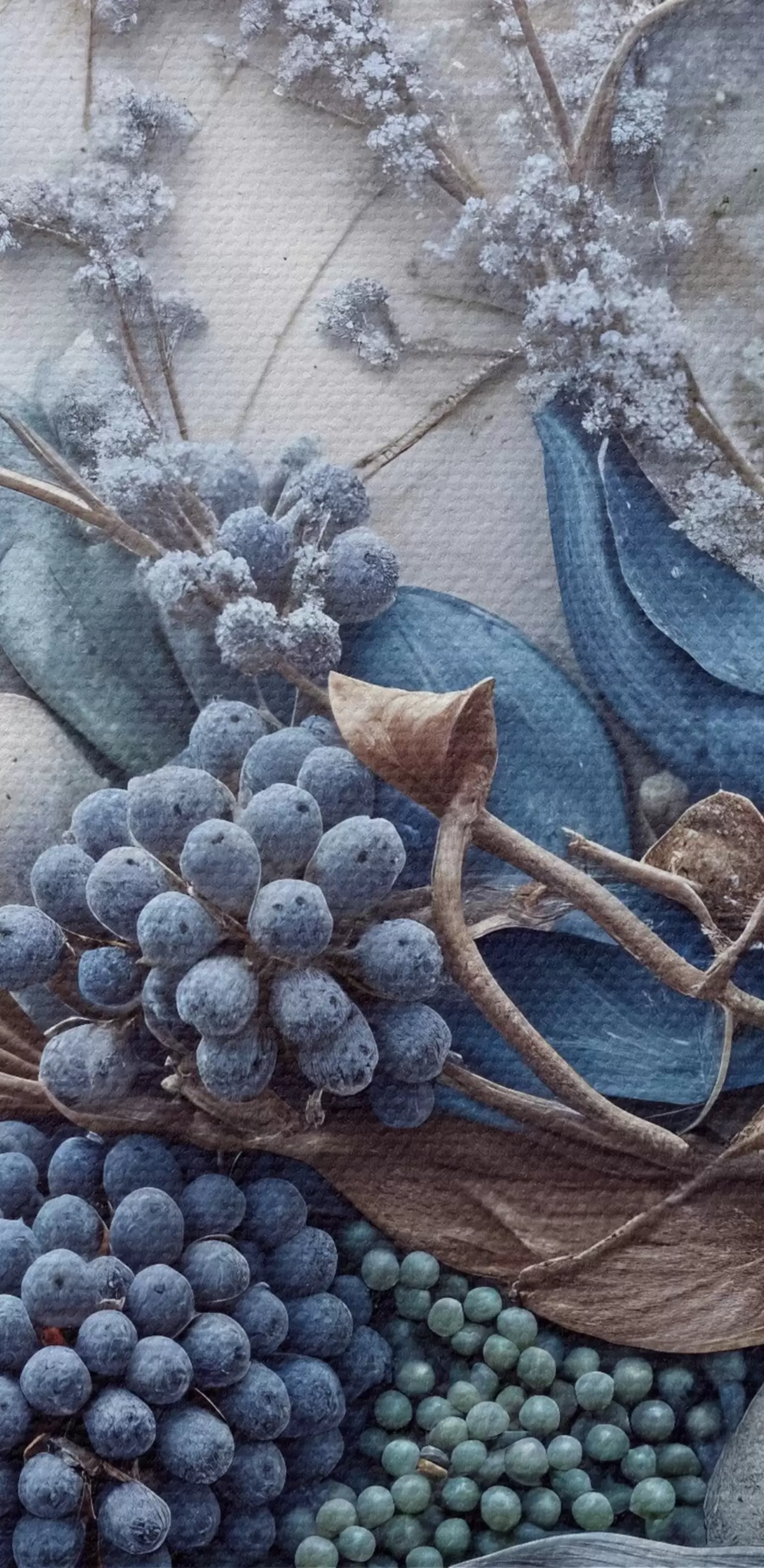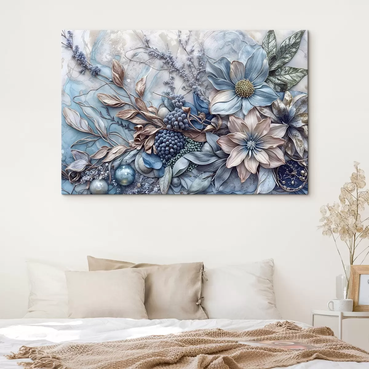 Картина Детально текстуровані абстрактні пишні квіткові композиції з великими, яскравими блакитними та рожевими квітами, ягодами та іншими ботанічними елементами Арт. s42210