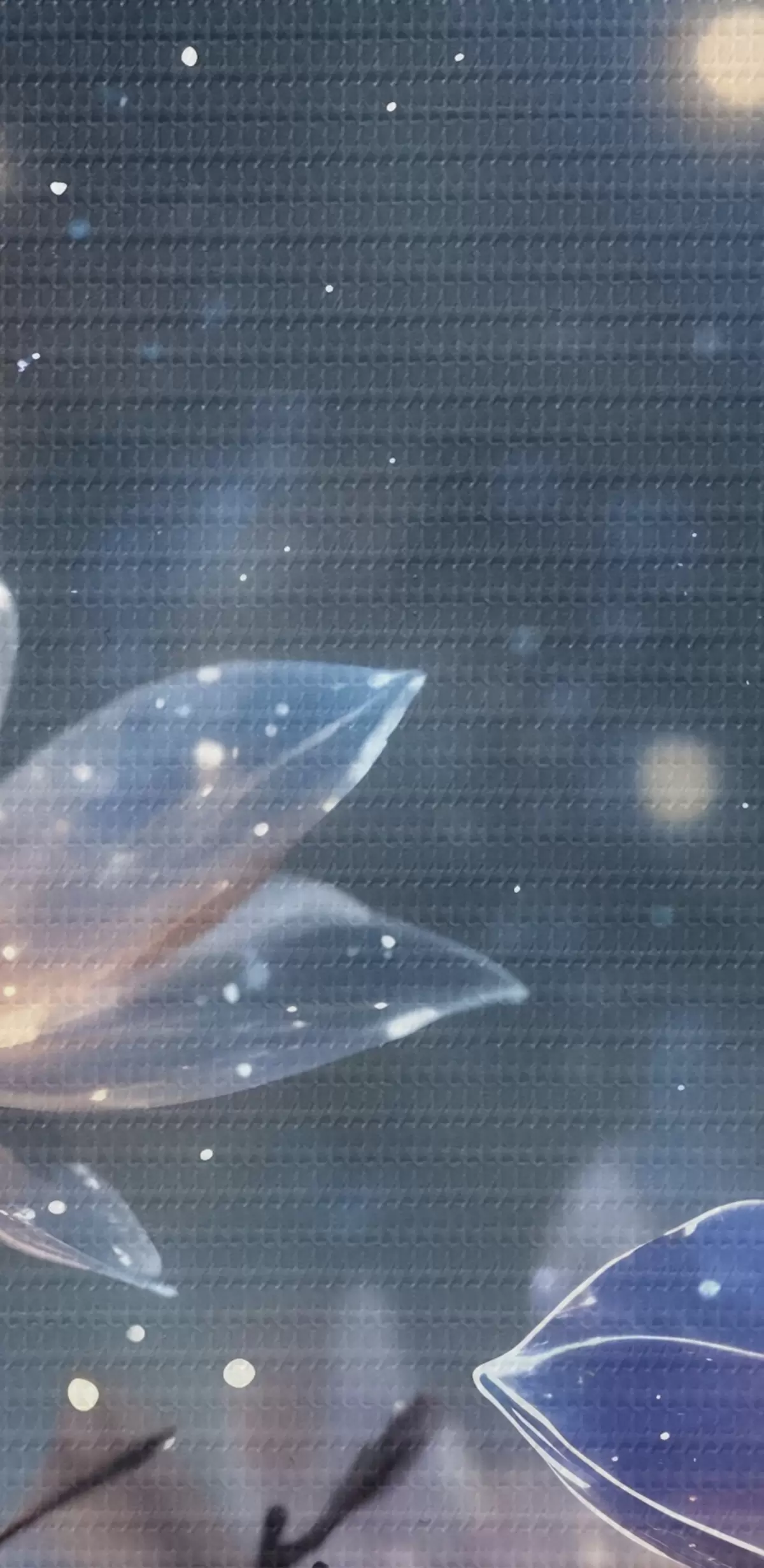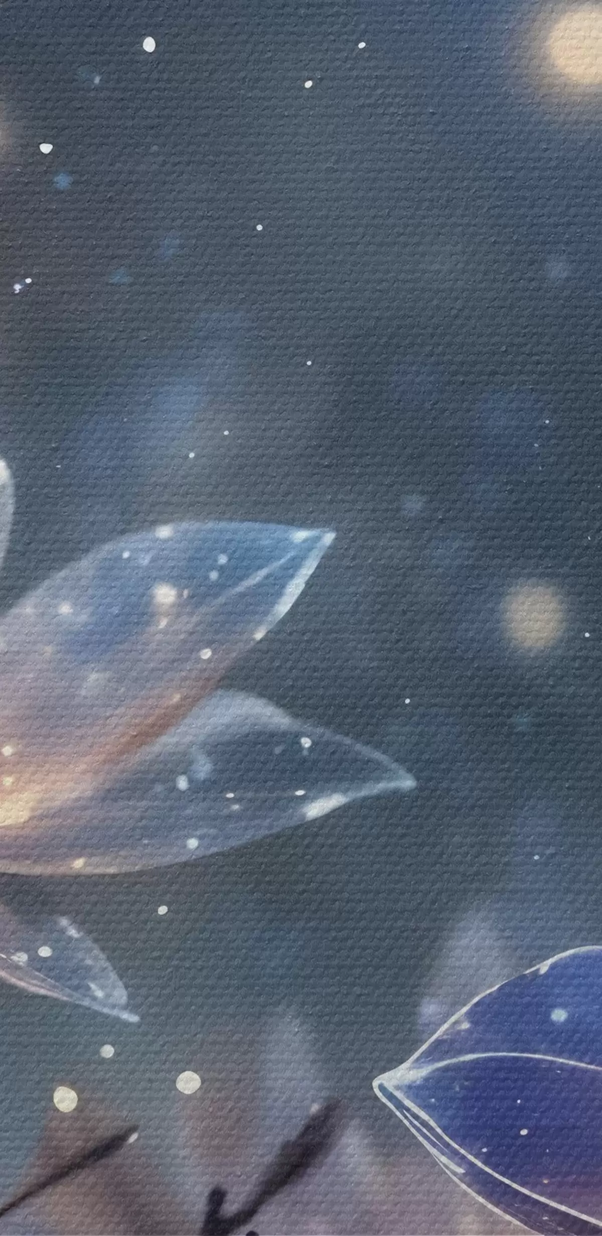 Картина Абстрактні фантазійні квіти на гілках з фактурними пелюстками із зірками та місяцем на тлі нічного неба Арт. s42211
