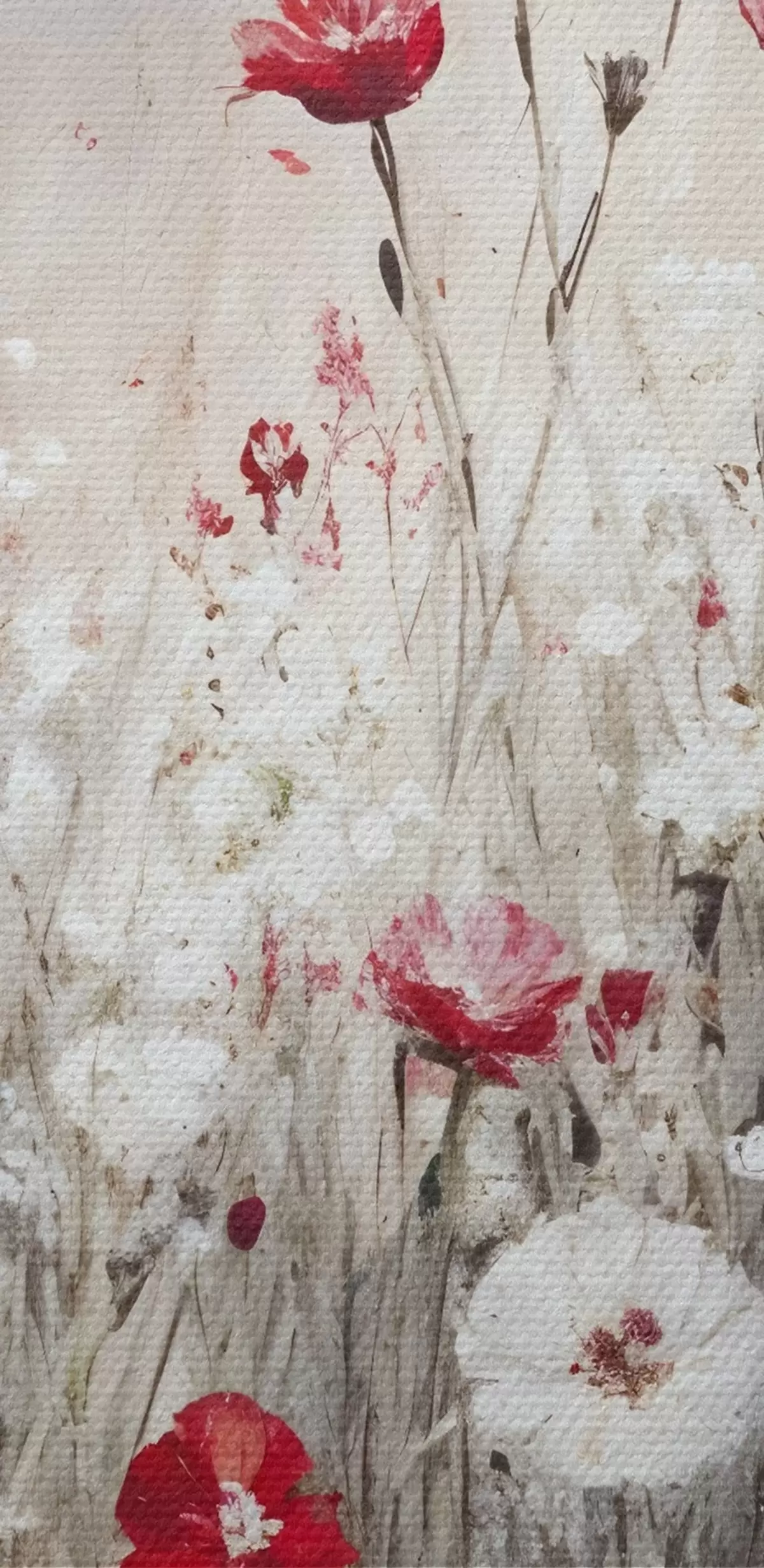Картина Абстрактна імітація олійного живопису поля червоних і білих маків та ромашок на сірому фактурному тлі s42213
