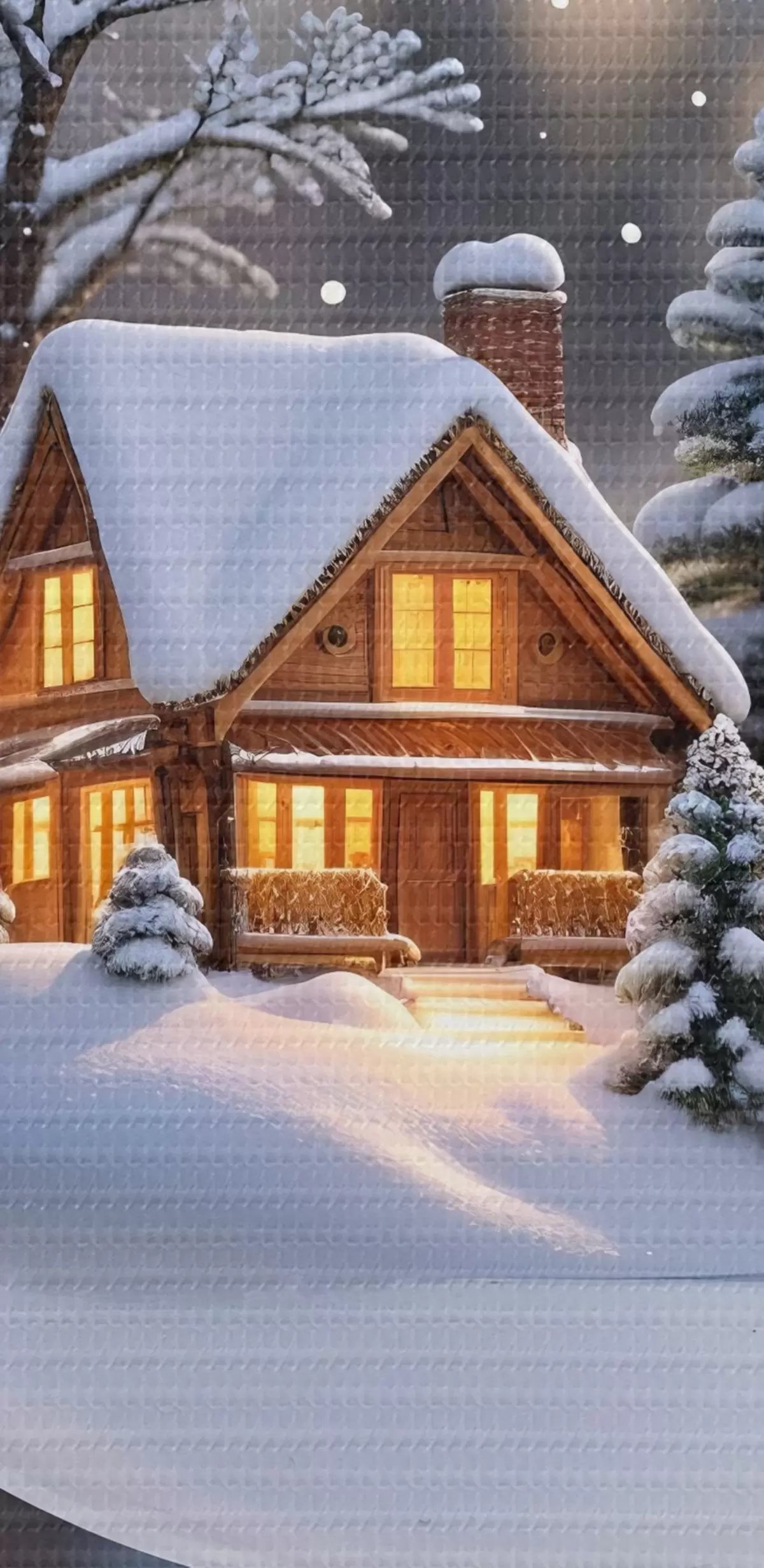 Картина Скляна різдвяна куля із засніженим зимовим пейзажем всередині, на якому зображено затишну хатинку в лісі з соснами s42236