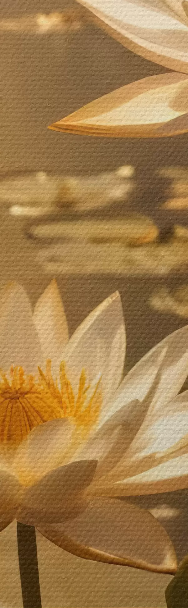 Картина Білі квіти лотоса, що плавають на спокійному ставку з сонцем, створюючи безтурботну і спокійну атмосферу Арт. s42239