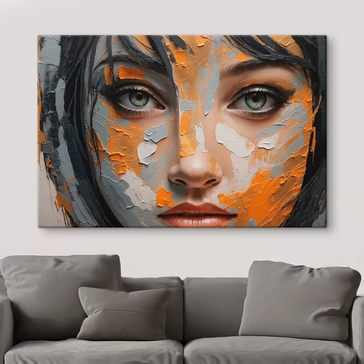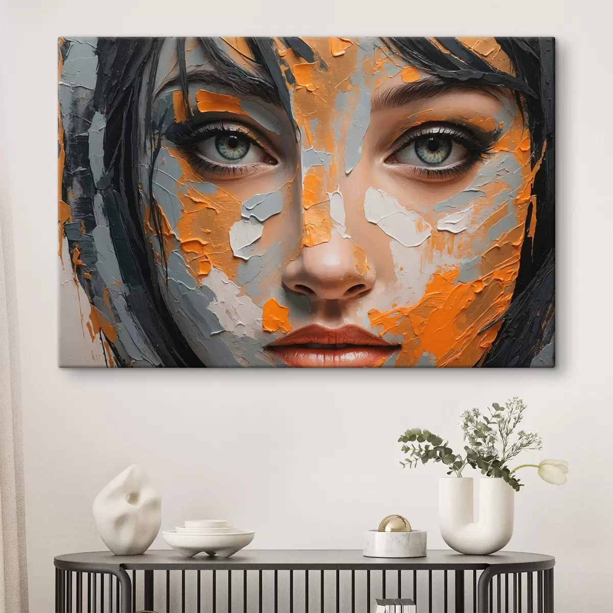 Картина Обличчя дівчини розмальоване білою та жовтою фарбами s42259