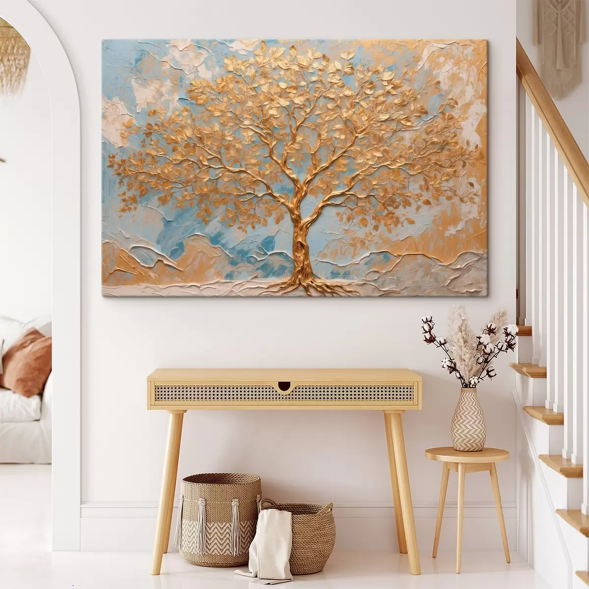 Картина Жовте дерево на синьо-білому тлі Арт. s42266