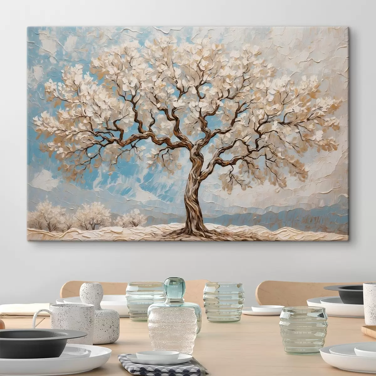 Картина Біле дерево на синьо-білому тлі Арт. s42275