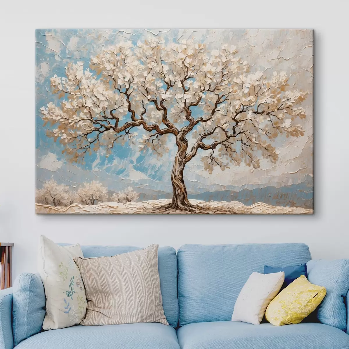 Картина Біле дерево на синьо-білому тлі Арт. s42275
