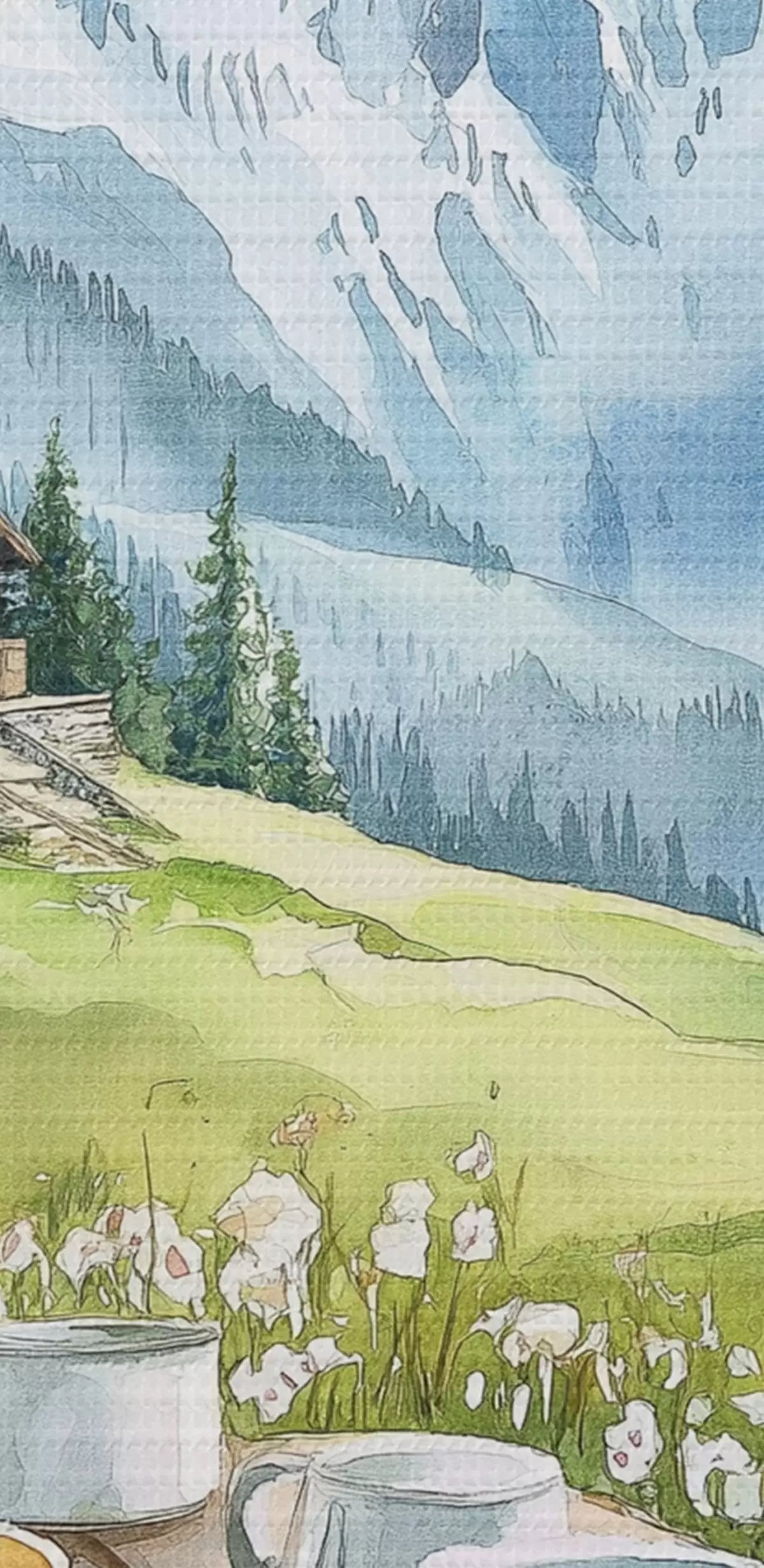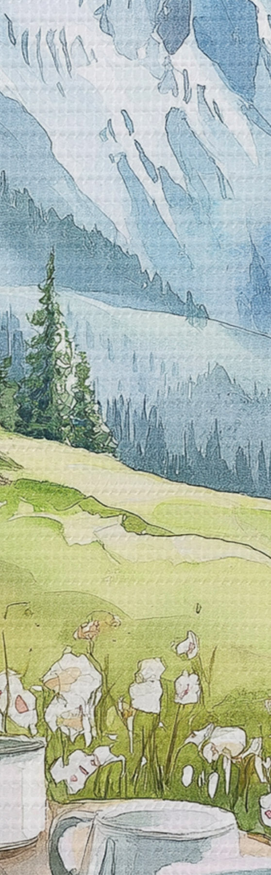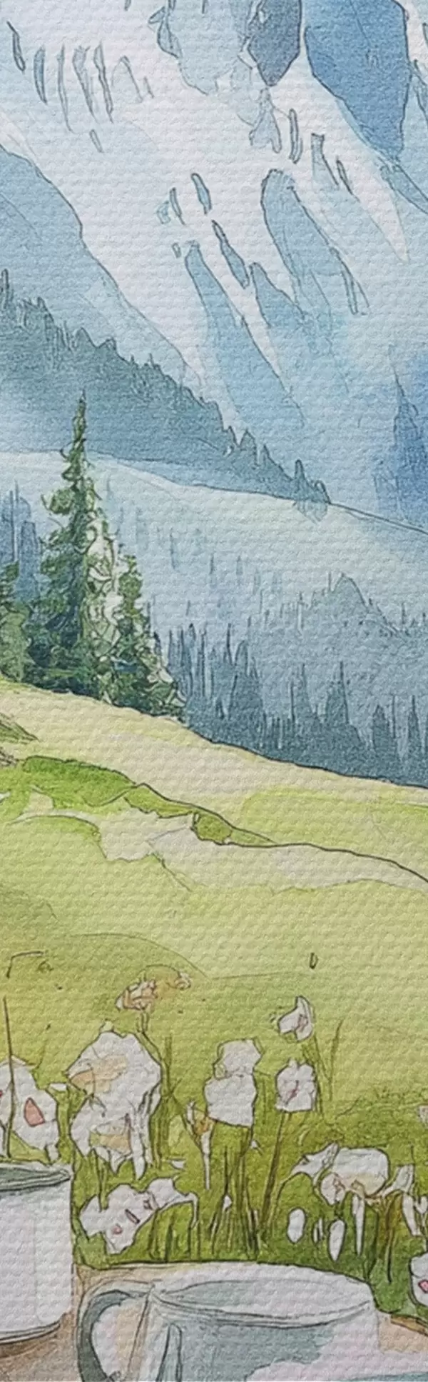 Картина Сніданок в Альпах, гори, ліс, природа, літо, акварель Арт. s42426
