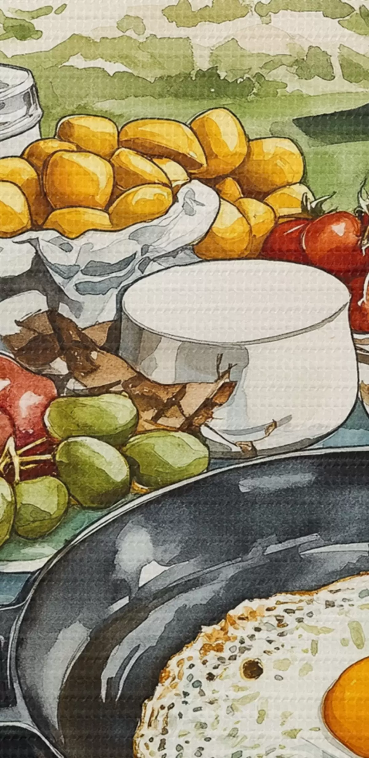 Картина Гарний акварельний сніданок, життя в фургоні, кемпінг, гори Арт. s42429