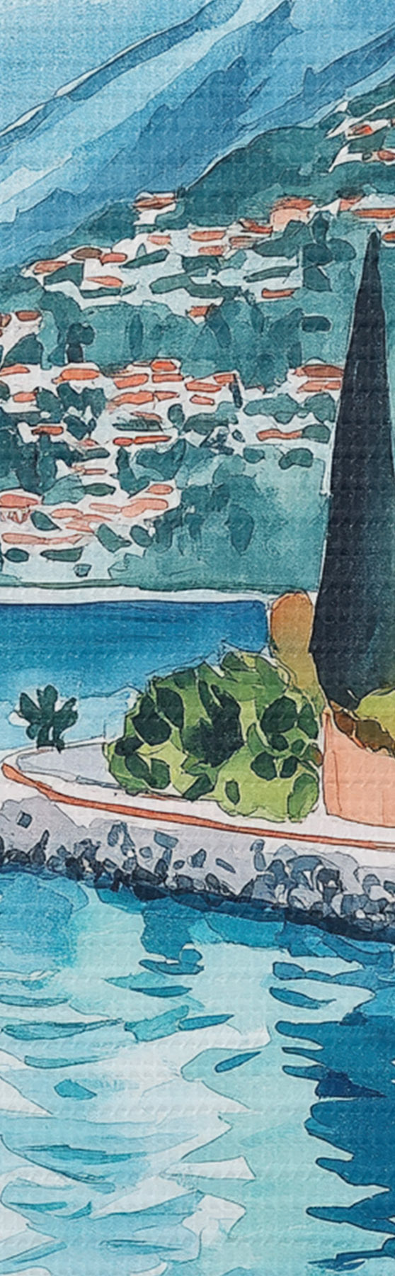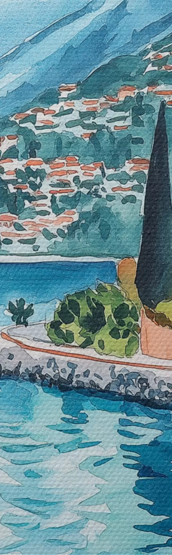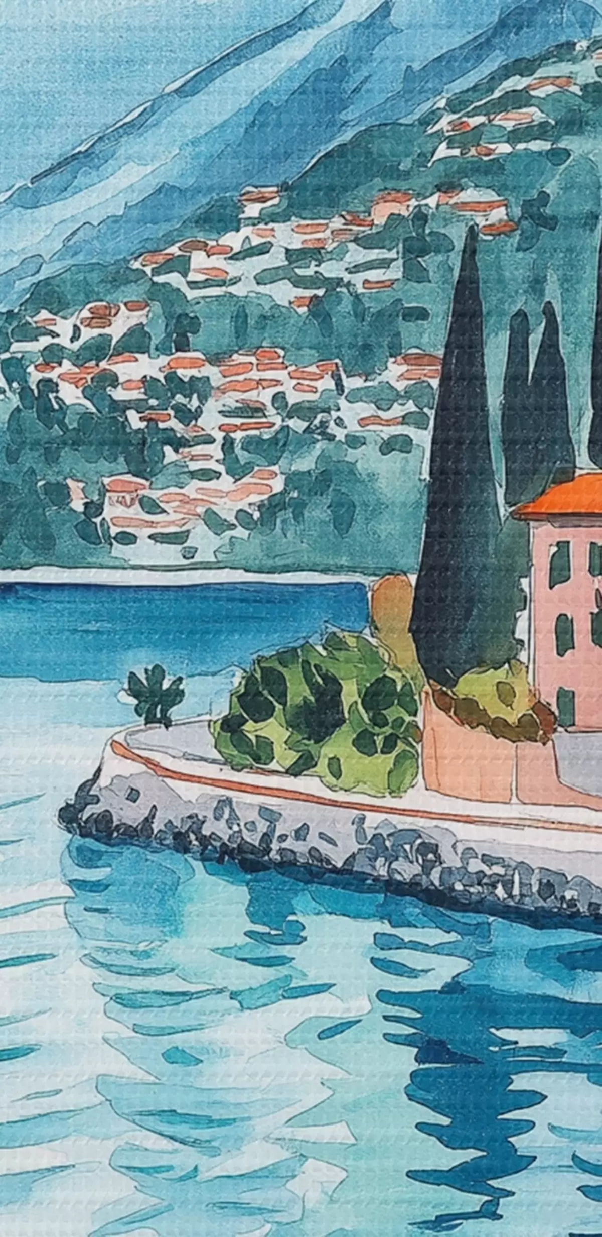 Картина Озеро Комо, Італія, акварельний стиль, піца, коктейлі, старе місто, гори Арт. s42437