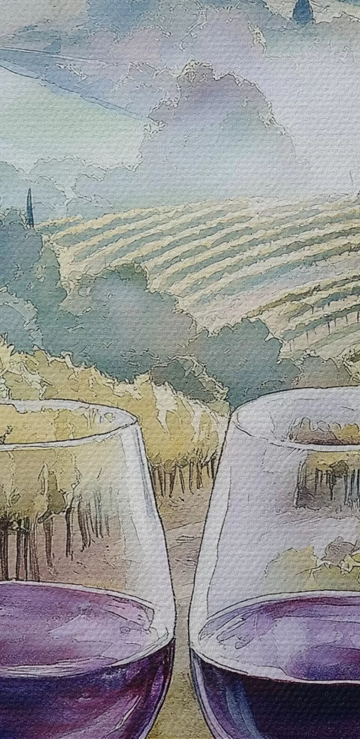 Картина Акварельні тосканські пейзажі, винні двори, виноград s42440