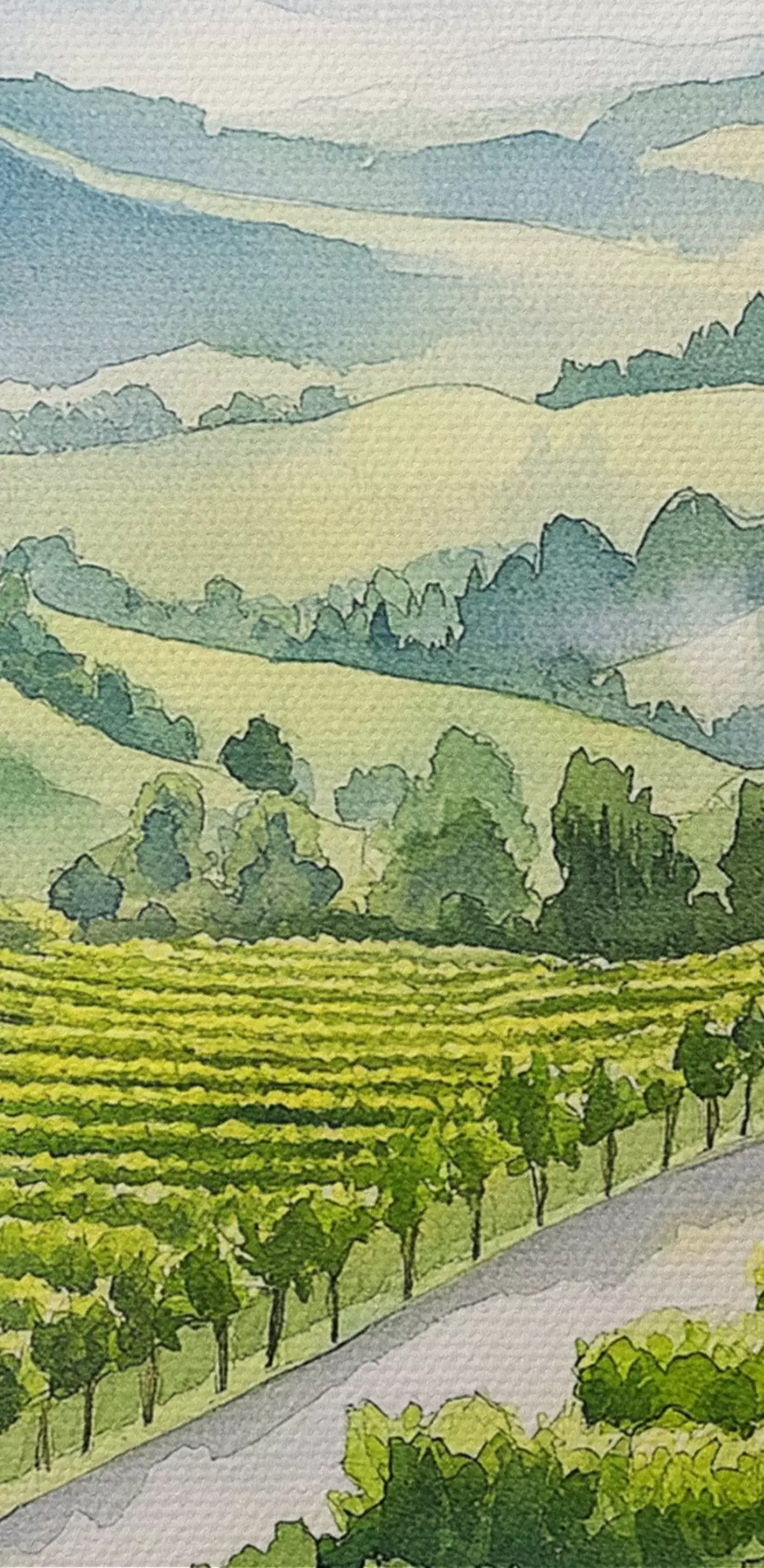 Картина Пейзажні двори, акварельні пейзажі, келихи для вина Арт. s42444