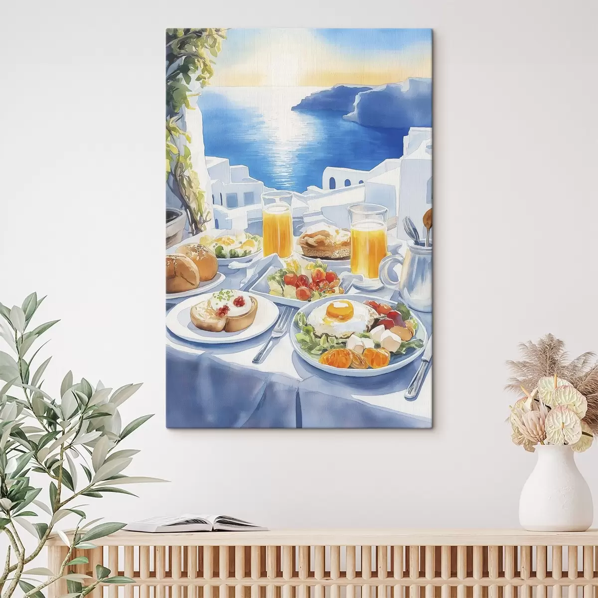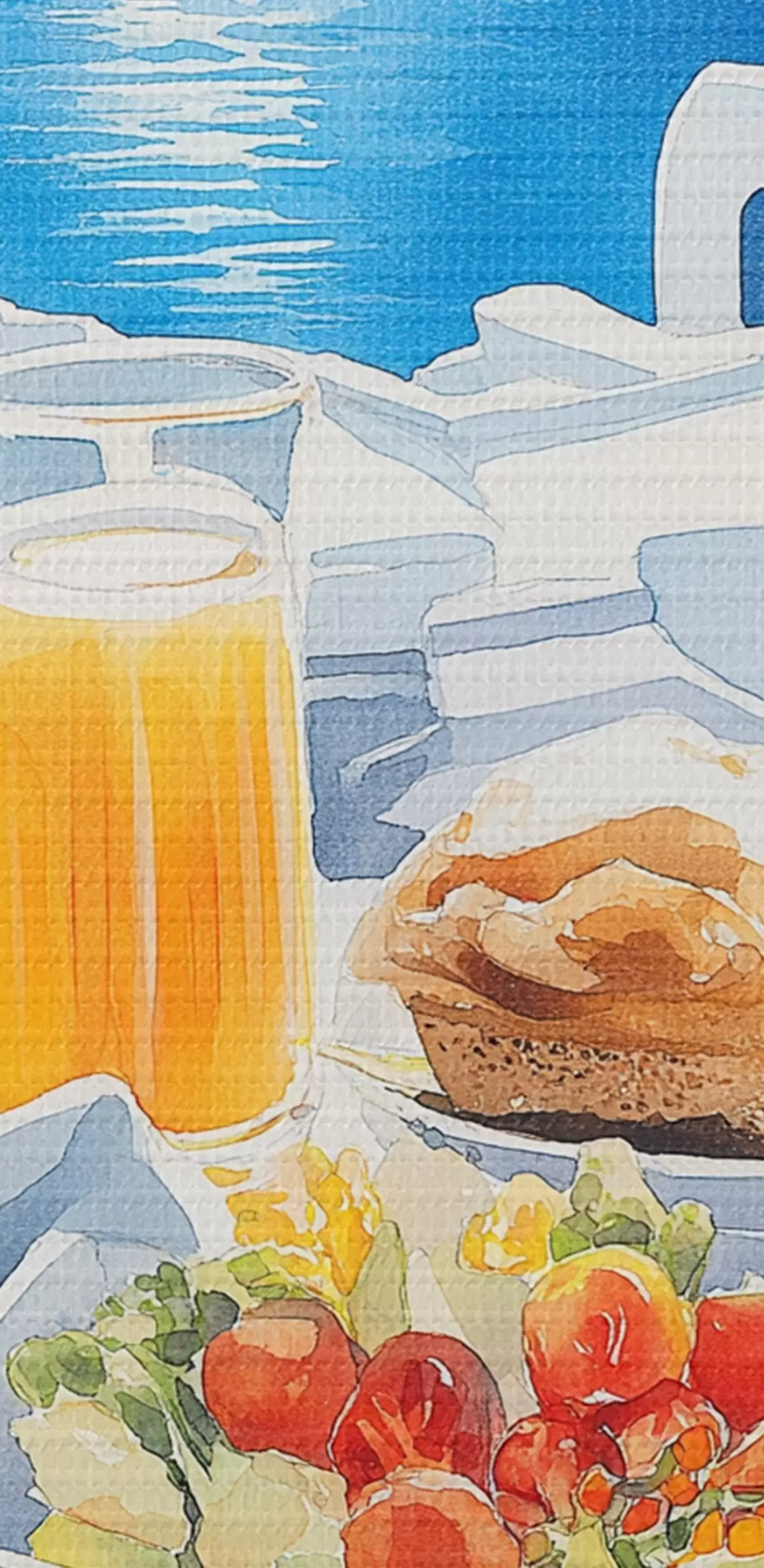 Картина Пейзажі Санторіні, сніданок, акварельний стиль, старе місто Арт. s42454