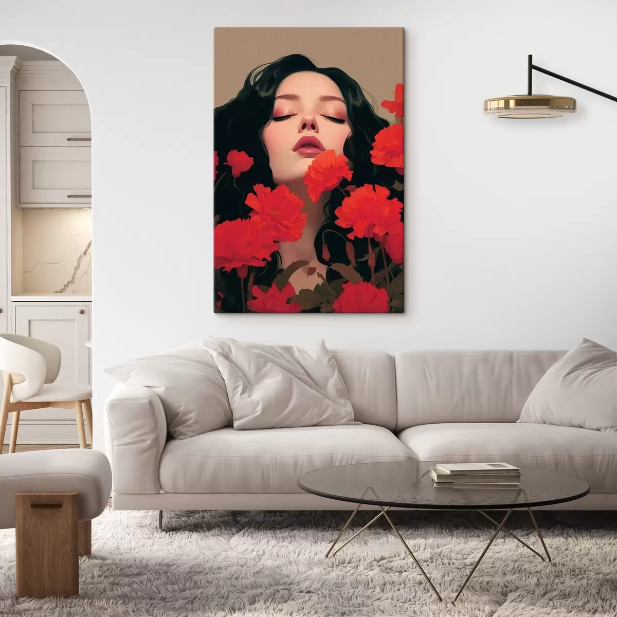 Картина Жіночий портрет серед червоних квітів Арт. s42478