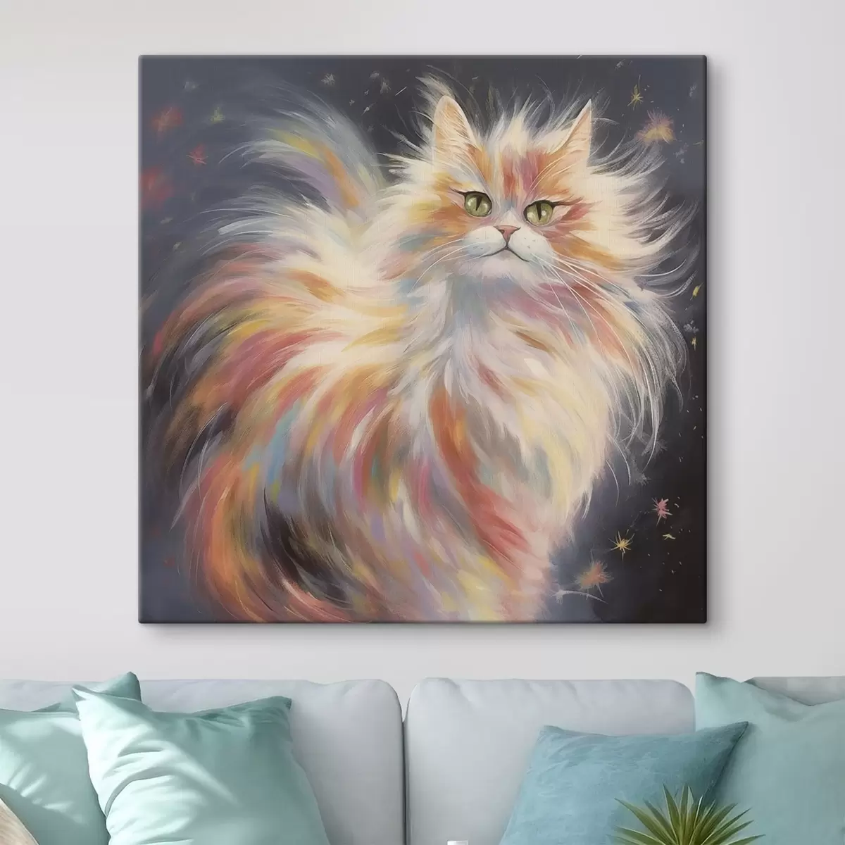 Картина Пухнастий кіт з барвистим хутром на темному тлі Арт. s42484