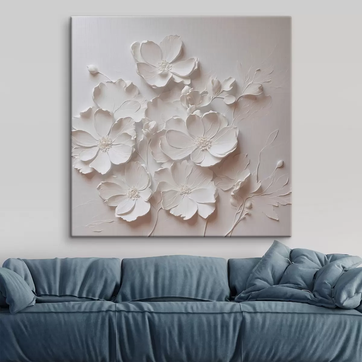 Картина Білі квіти на білому тлі в стилі олійного живопису Арт. s42516