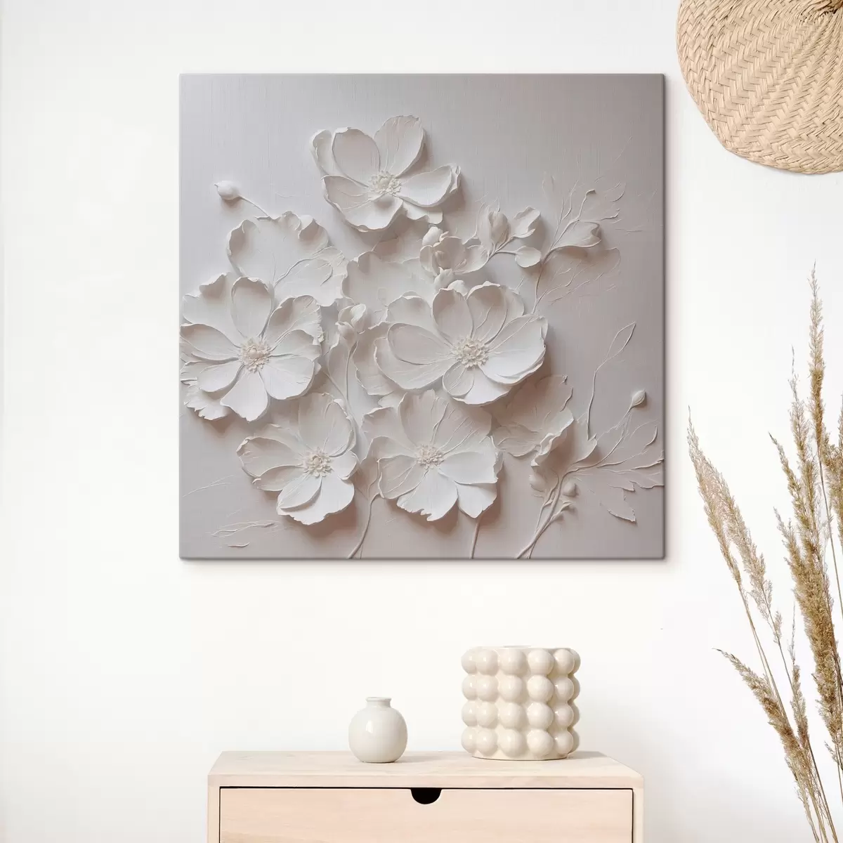 Картина Білі квіти на білому тлі в стилі олійного живопису s42516