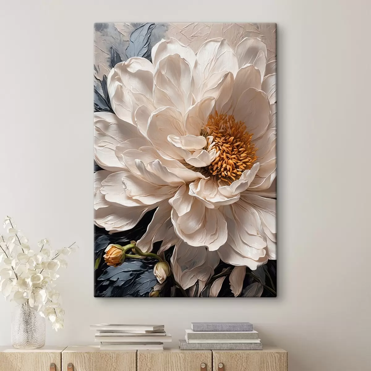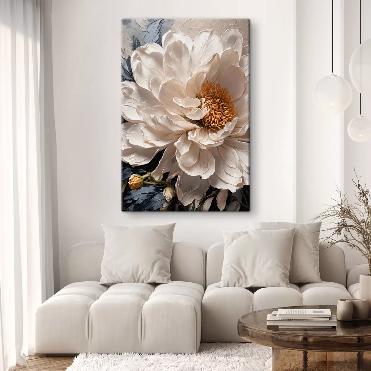 Картина Біла квітка на синьо-бежевому тлі s42523