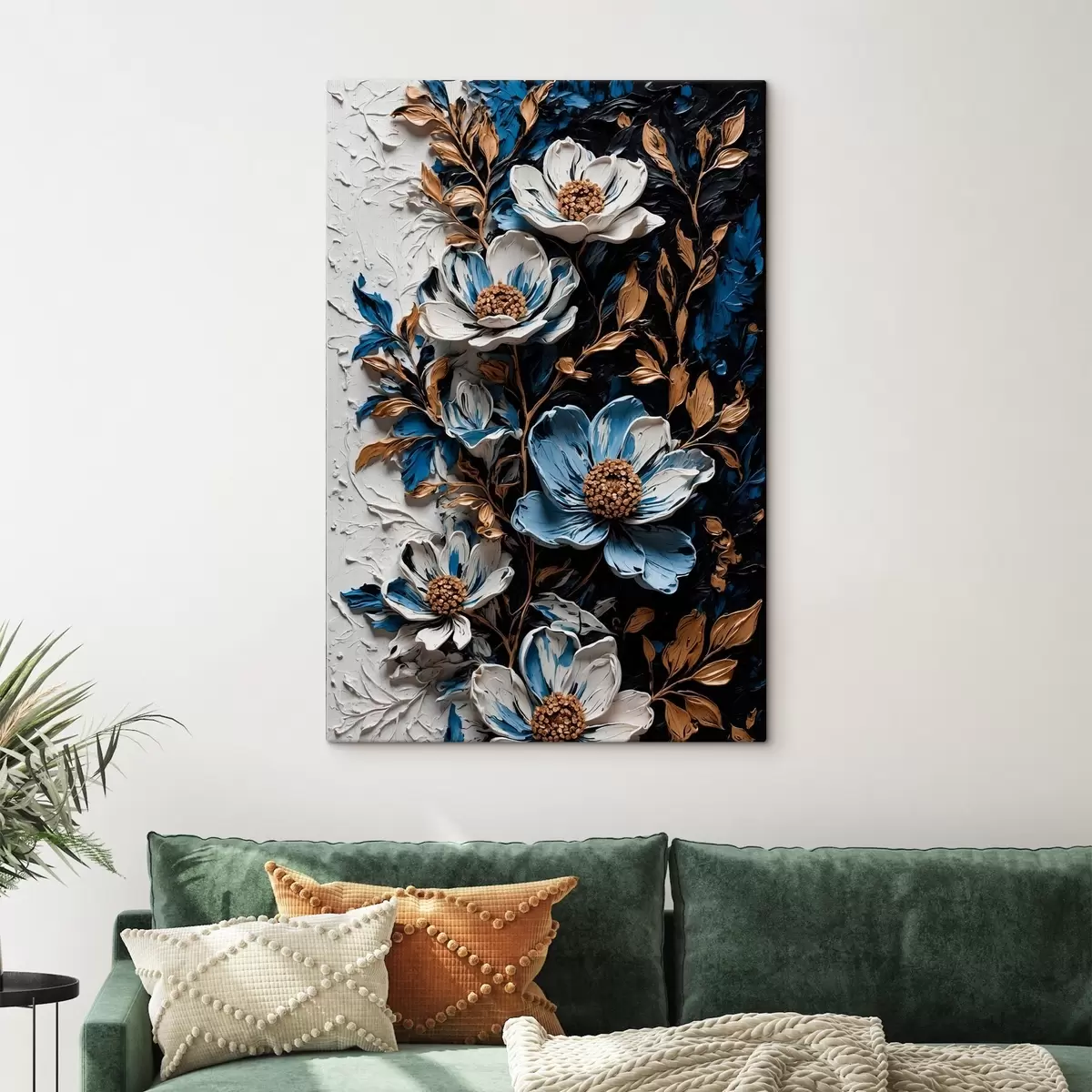 Картина Квіти та стебла на чорно-білому тлі в стилі олійного живопису s42532