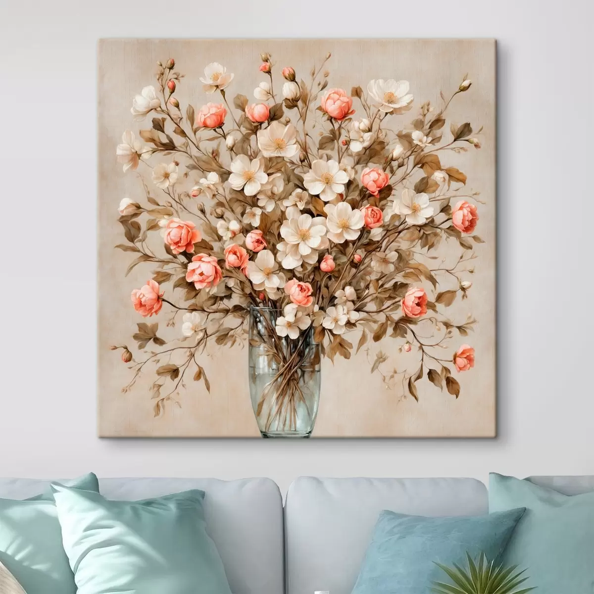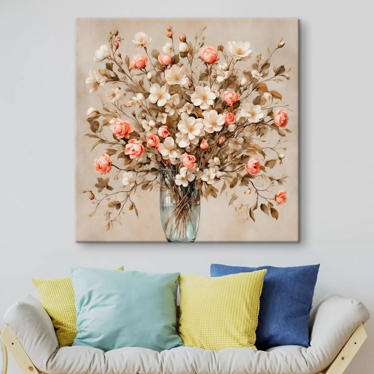 Картина Квіти у прозорій вазі на бежевому тлі Арт. s42534
