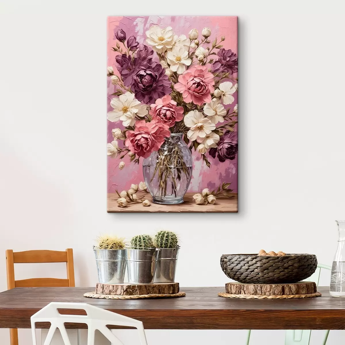 Картина Квіти у прозорій вазі на фіолетовому фоні s42535