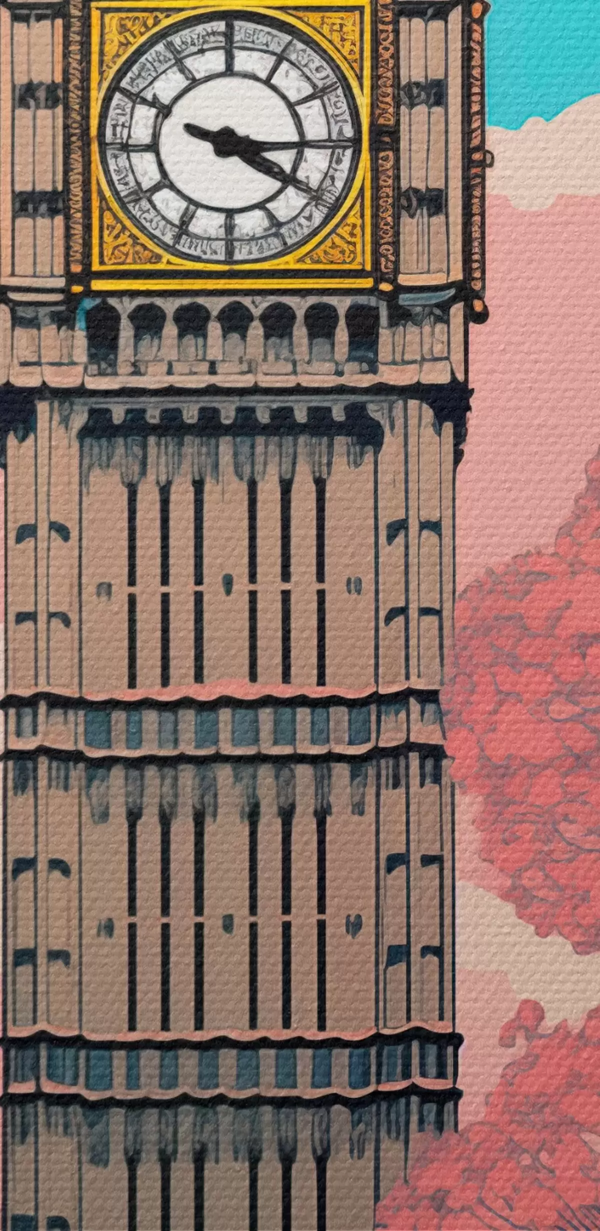 Картина Вид на Біг-Бен з весняними рожевими деревами, яскраво-блакитним небом і вінтажним ліхтарем на передньому плані. Арт. s42578