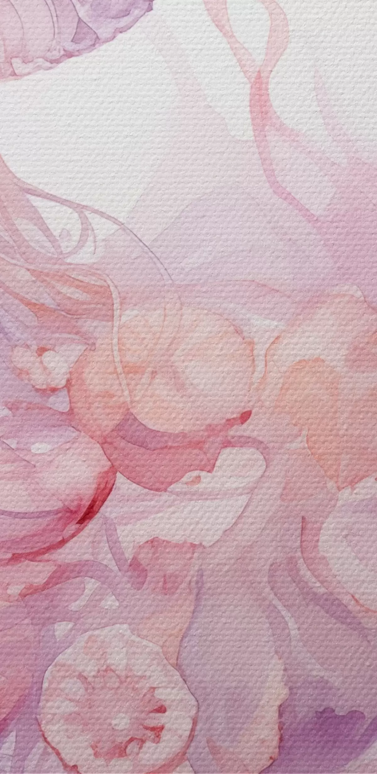 Картина Рожеві медузи, що плавають серед вихору ніжно-рожевих і фіолетових відтінків в оточенні абстрактних форм  s42730