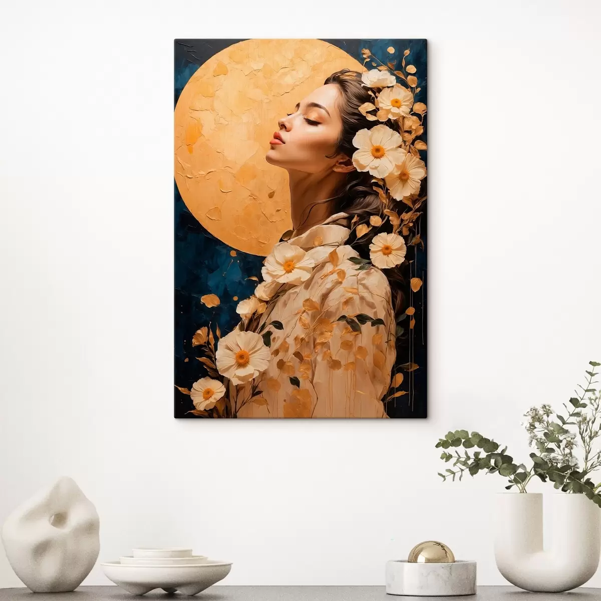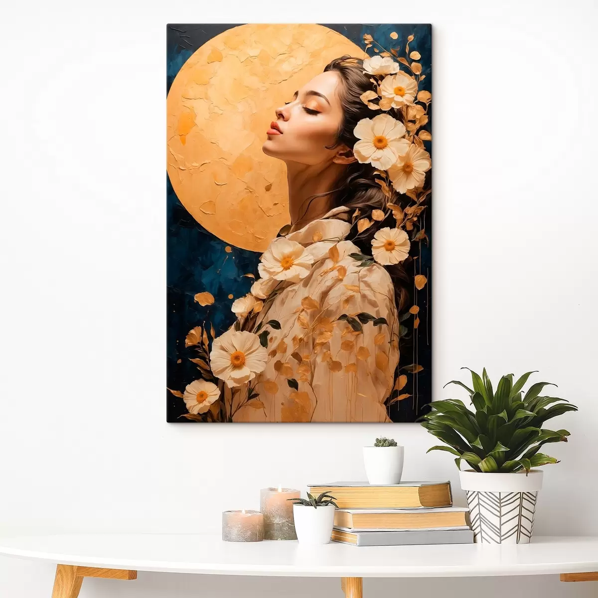 Картина Дівчина з квітами на тлі місяця Арт. s42774