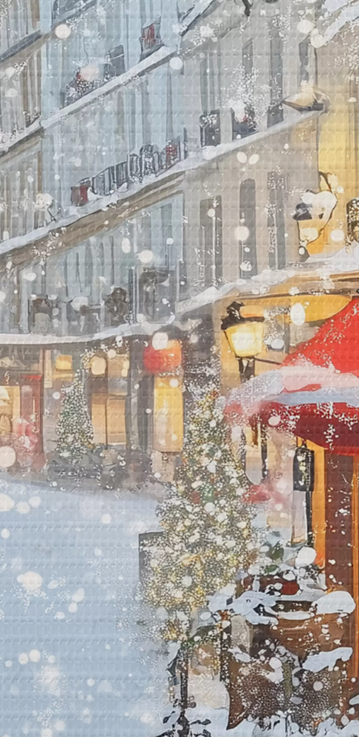 Картина Затишне зимове кафе, філіжанки кави, акриловий стиль, стара архітектура міста  s42795