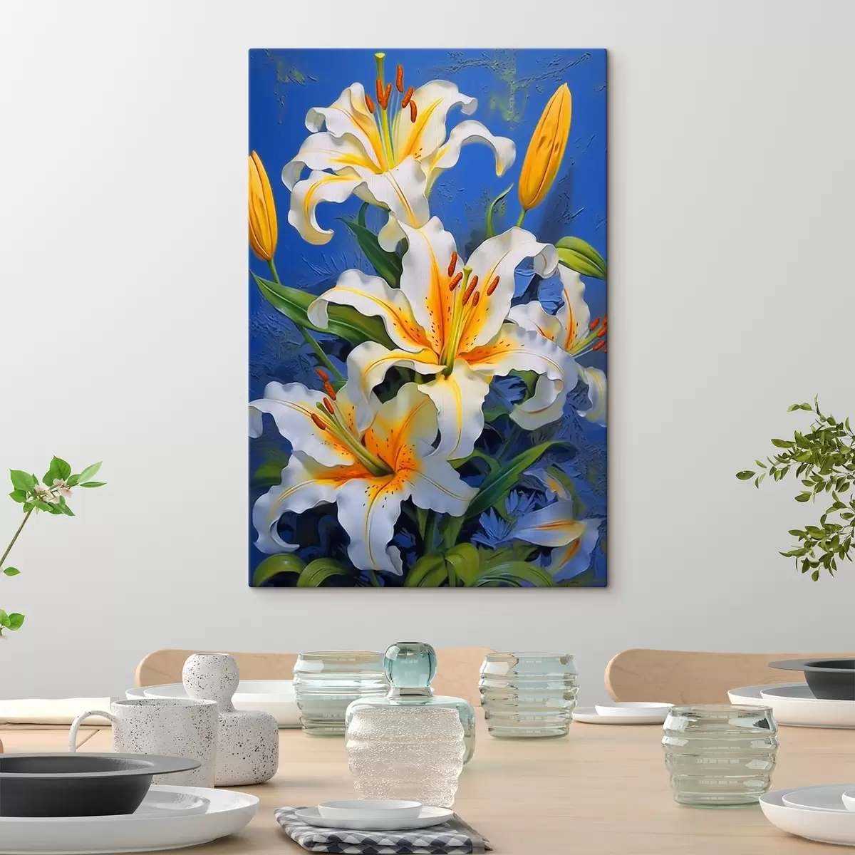 Картина Білі лілії на синьому тлі s43018