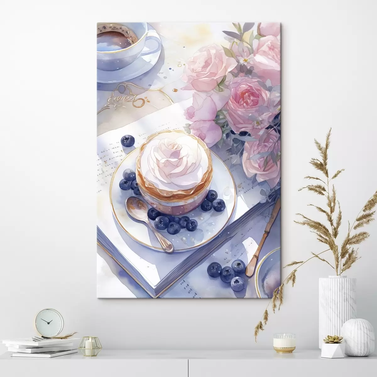 Картина Чорничний кекс, стиль бохо, акварель, рожеві троянди, поетичний Арт. s43053