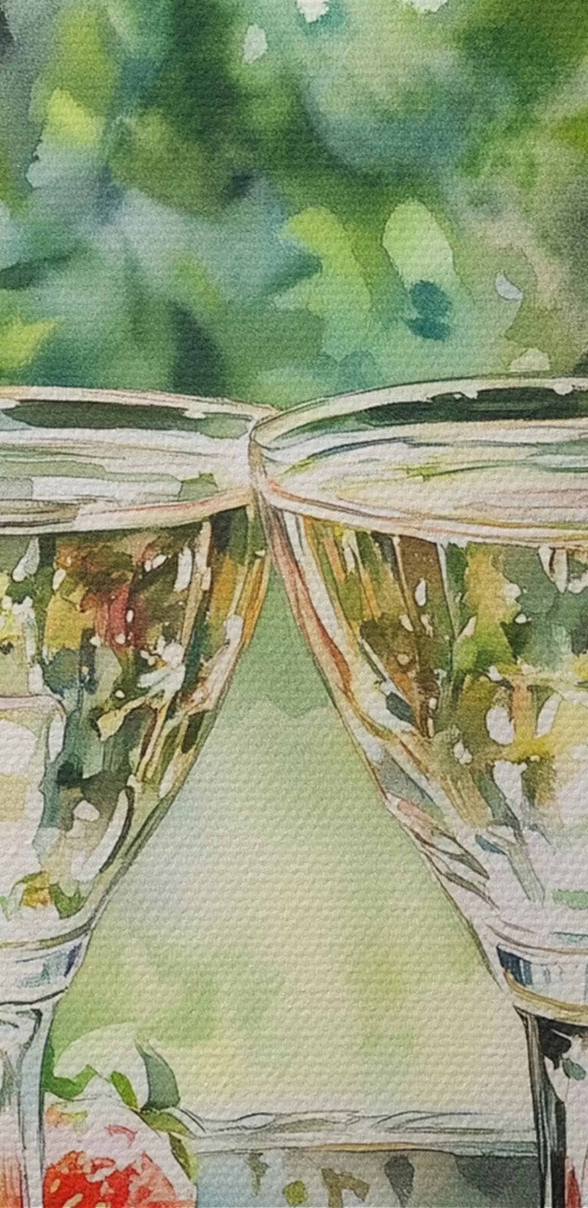 Картина Літній пікнік з шампанським і полуницею, акварельний малюнок Арт. s43055