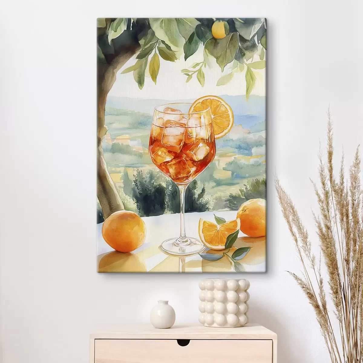 Картина Літній коктейль, Апероль Шприц, апельсини, акварельний малюнок s43058