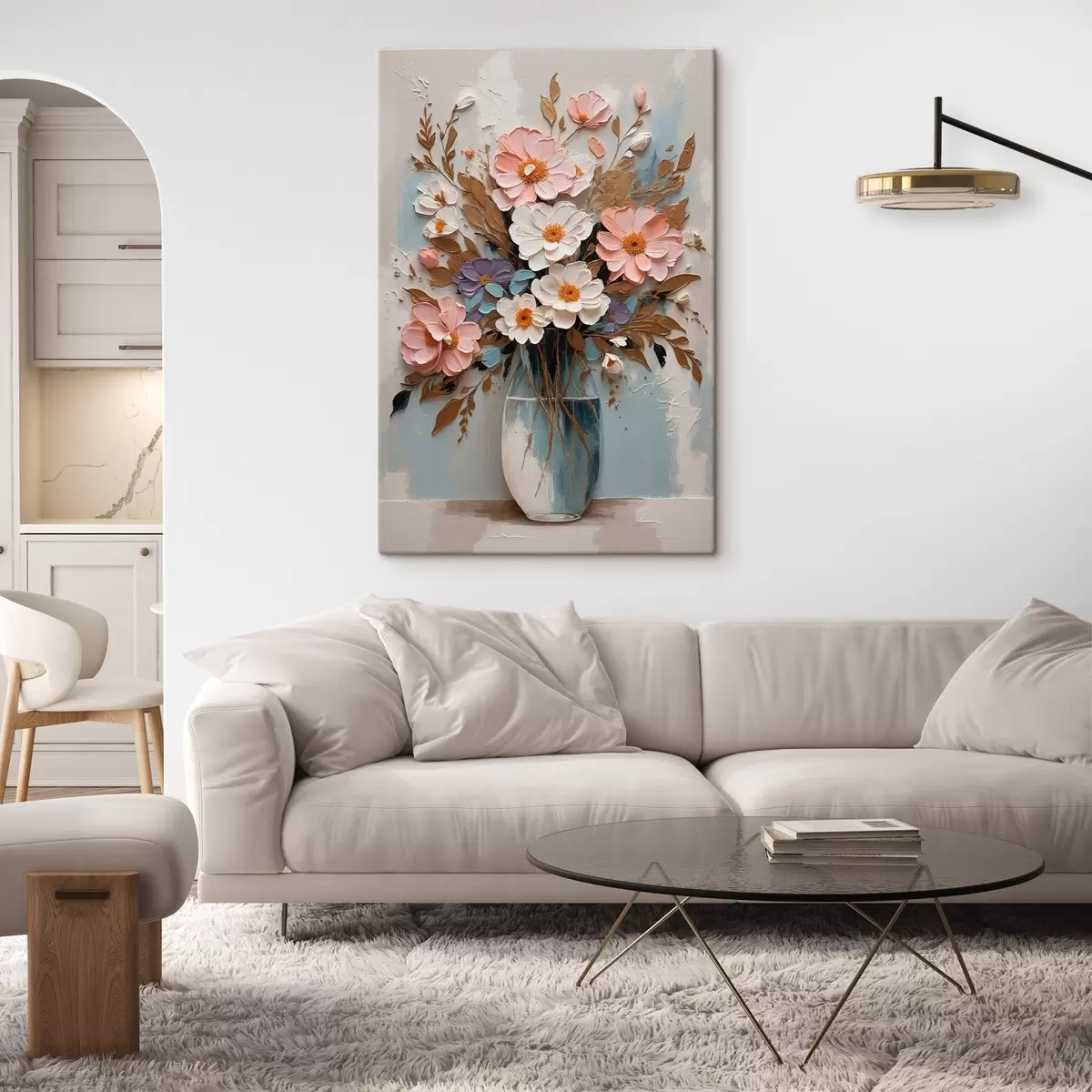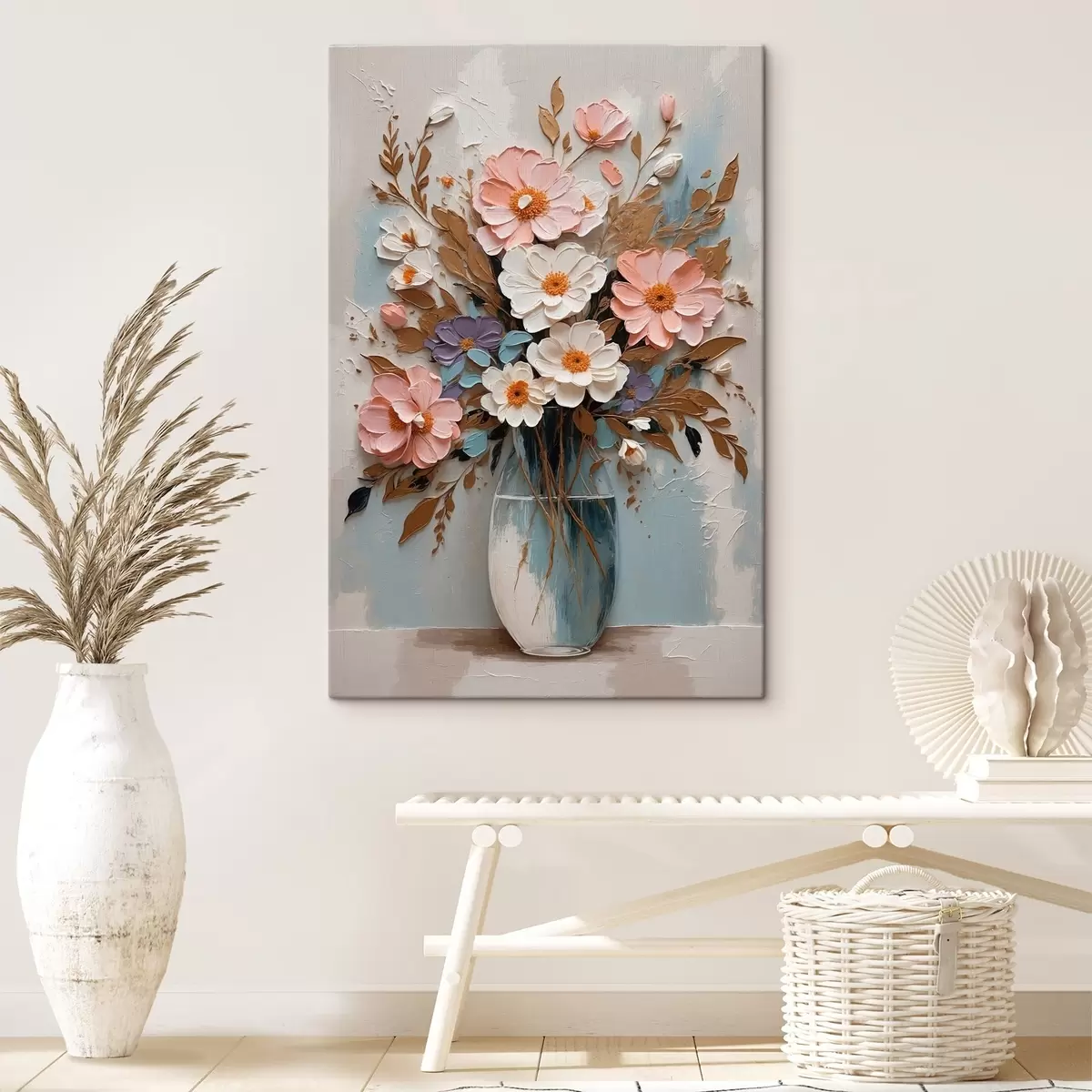 Картина Рожеві та білі квіти у прозорій вазі s43089
