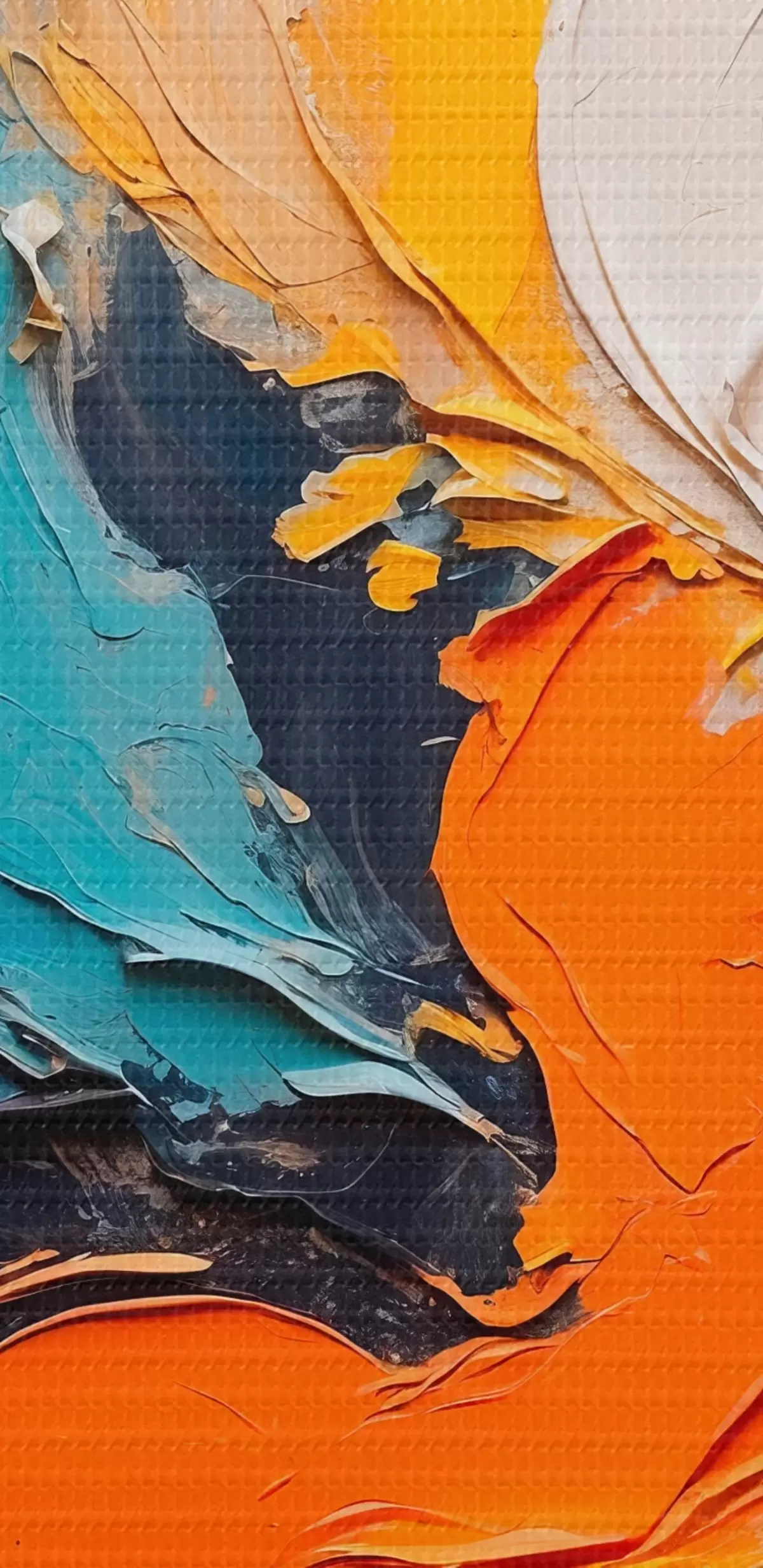 Картина Абстрактна картина в стилі олійного живопису з помаранчевими, синіми та білими кольорами s43094