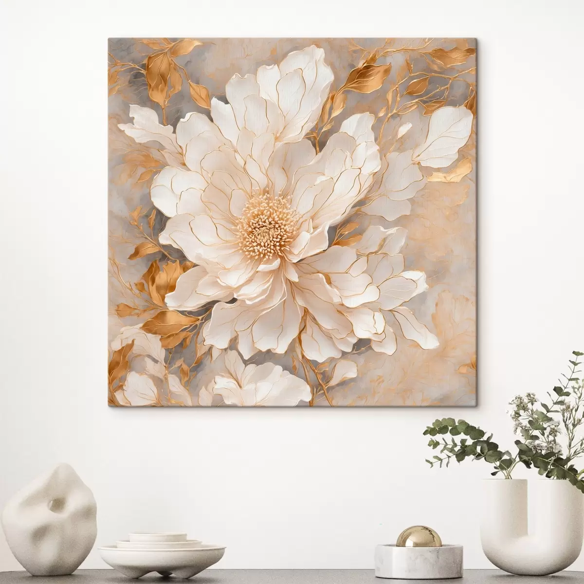 Картина Біла квітка з листям в стилі акрилового живопису Арт. s43115
