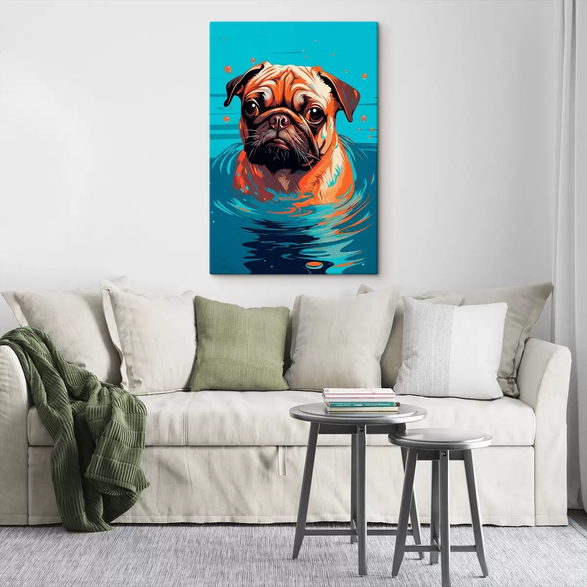 Картина Стилізований портрет мопса у воді з виразним поглядом s43136