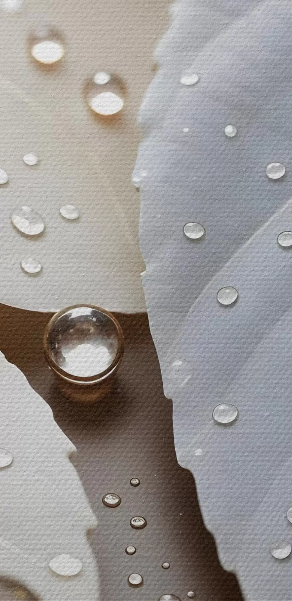 Картина Крупним планом біле листя, вкрите краплями води, мінімалістична композиція, нейтральне тло Арт. s43159