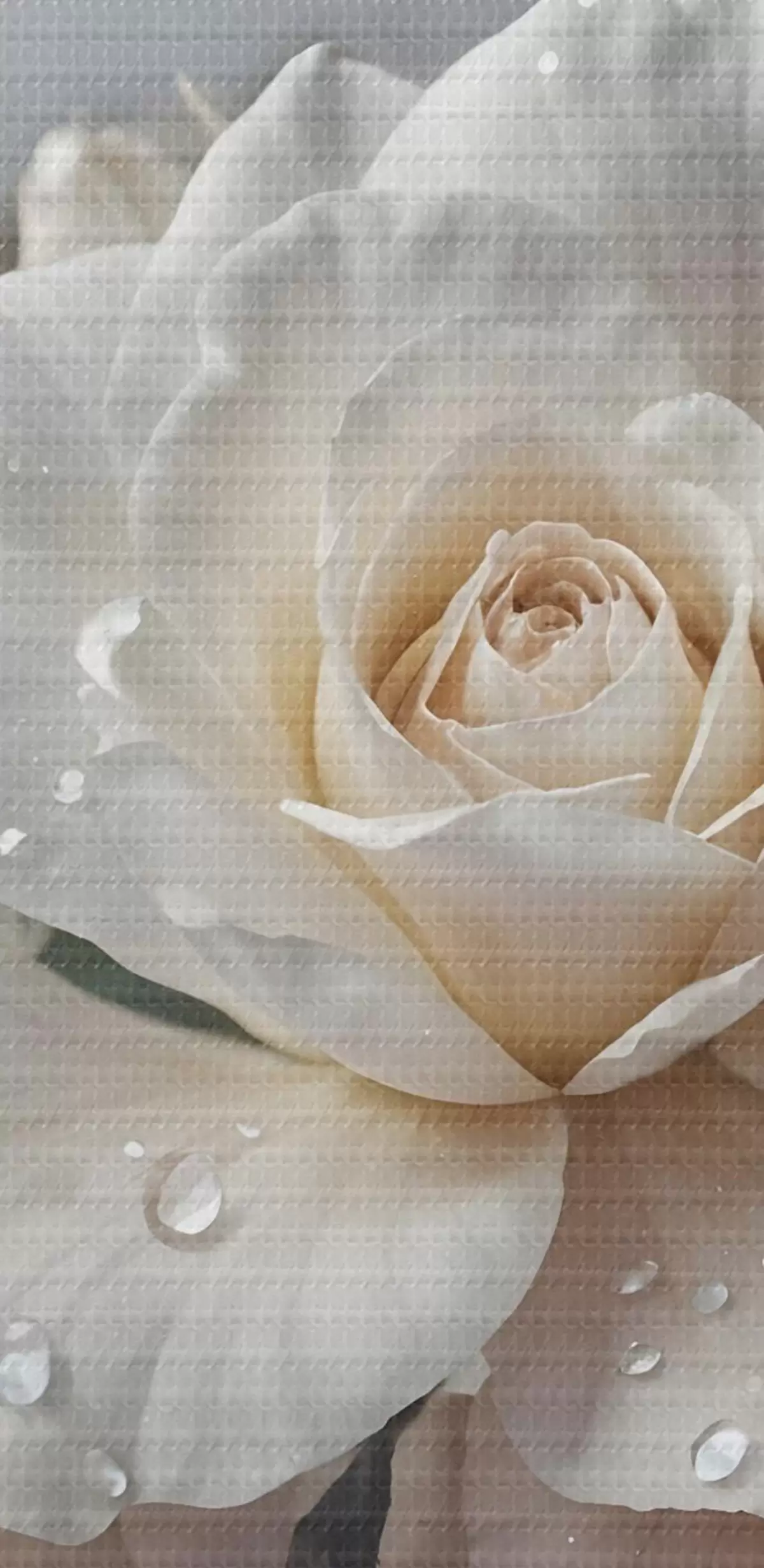Картина Група білих троянд з краплями води на пелюстках, трохи зеленого листя, приглушений фон, м'яке світло Арт. s43163