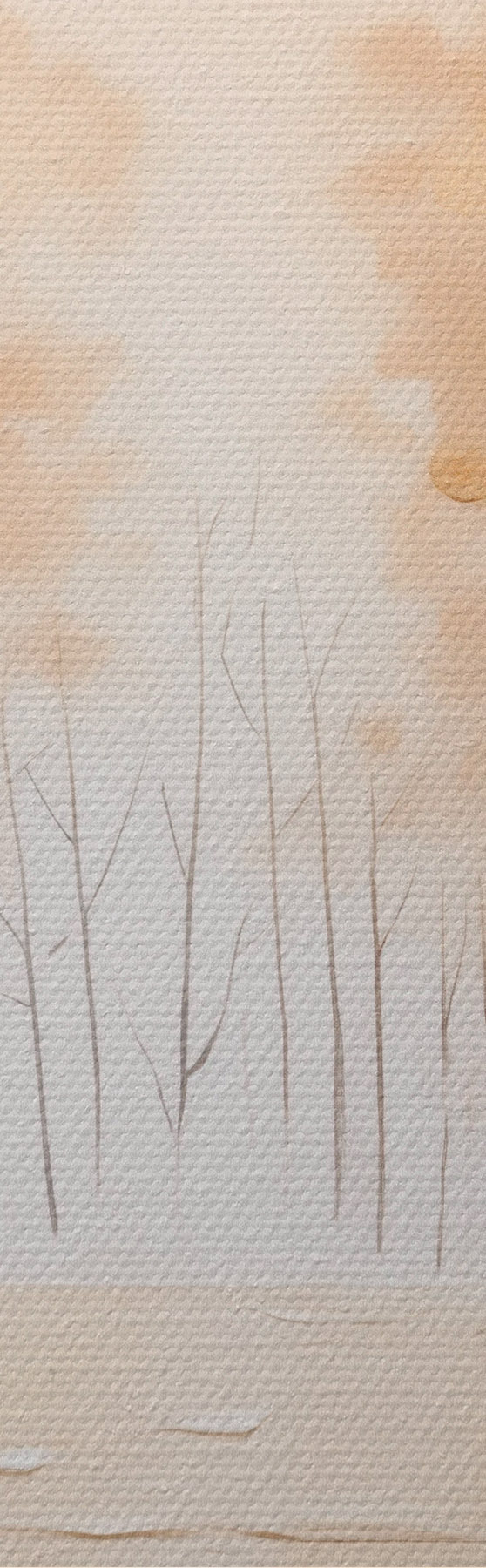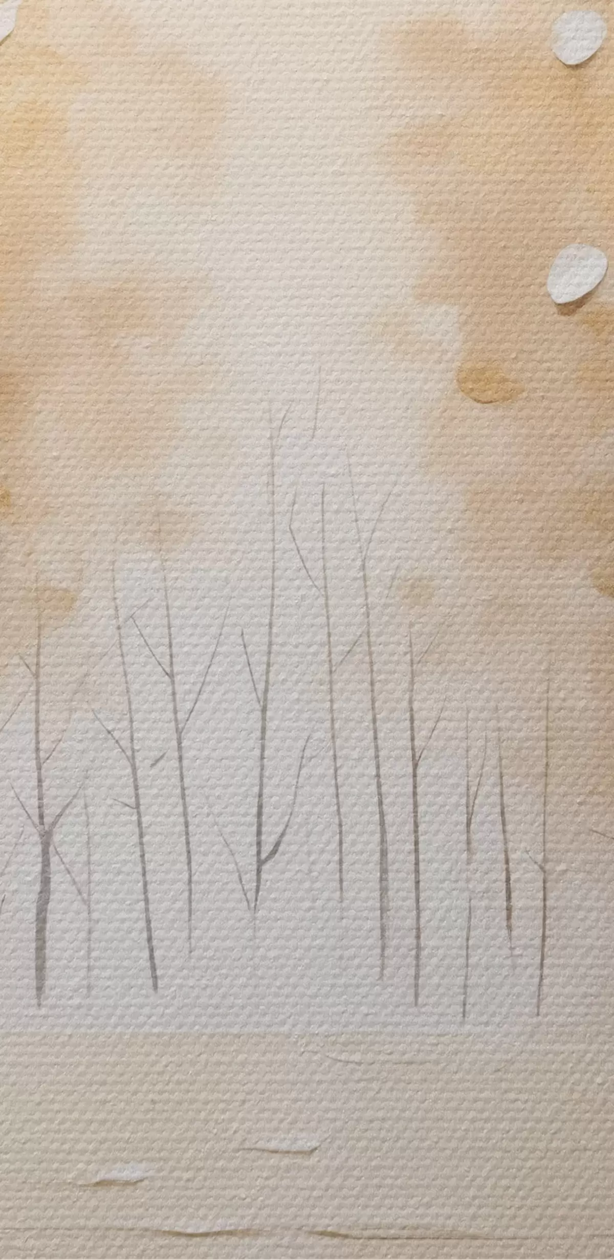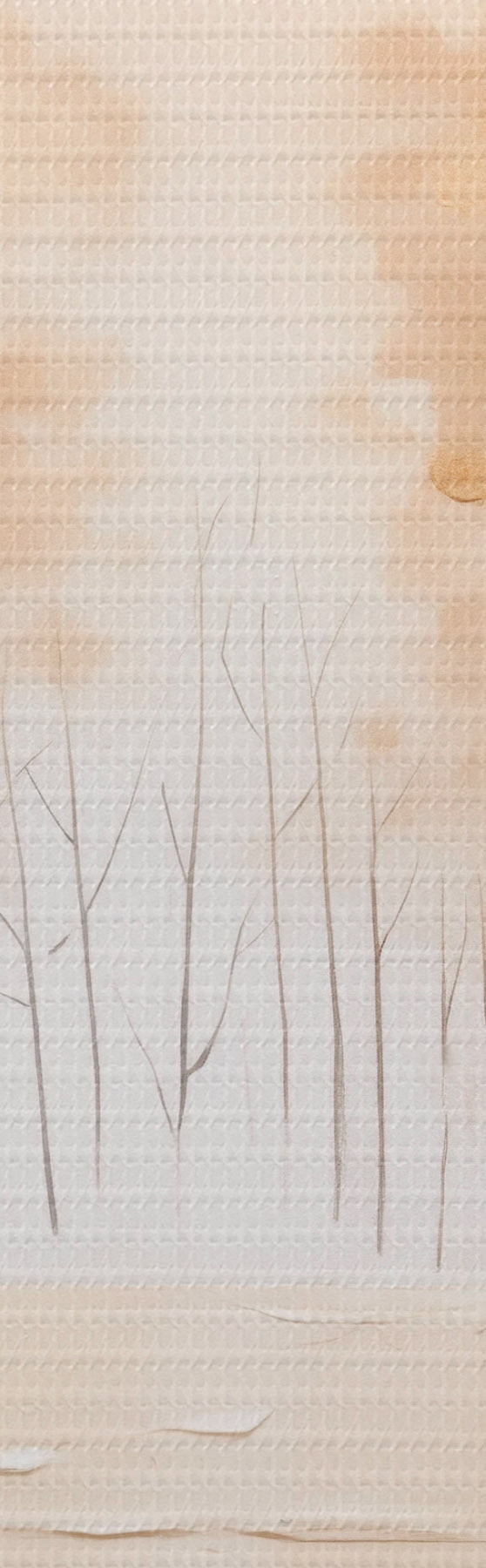 Картина Олійний живопис, що імітує коричневі дерева з білим листям у лісі з річкою посередині, біле тло Арт. s43172