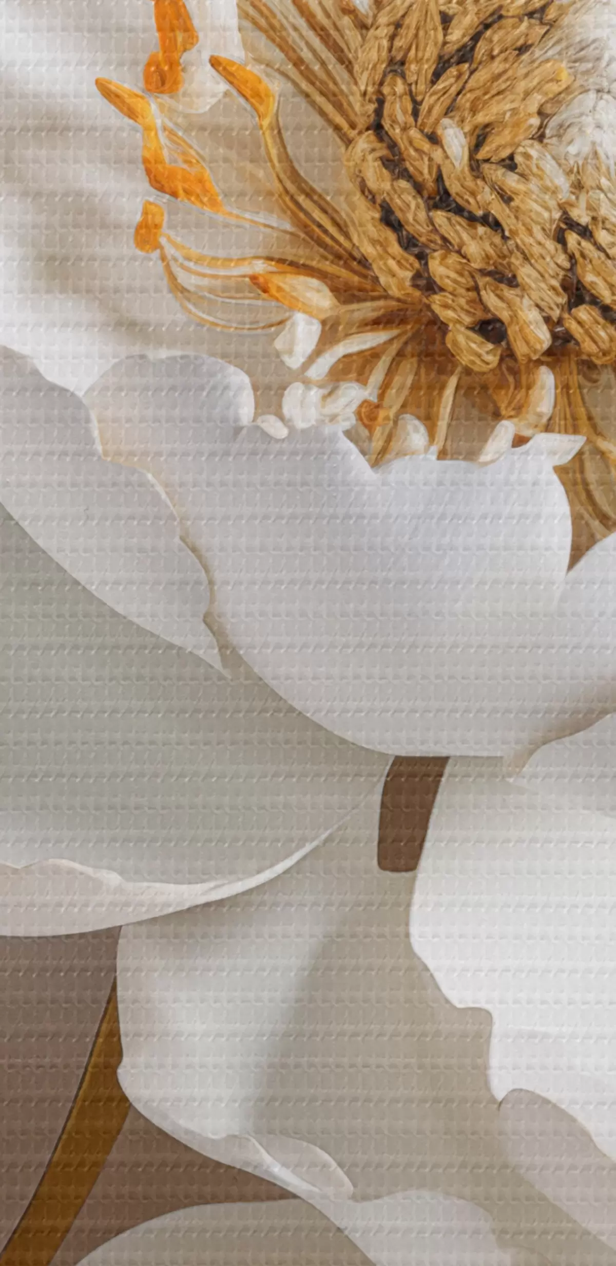 Картина Білі ніжні деталізовані декоративні квіти півонії з жовтим листям, фон світло-сірого кольору s43176